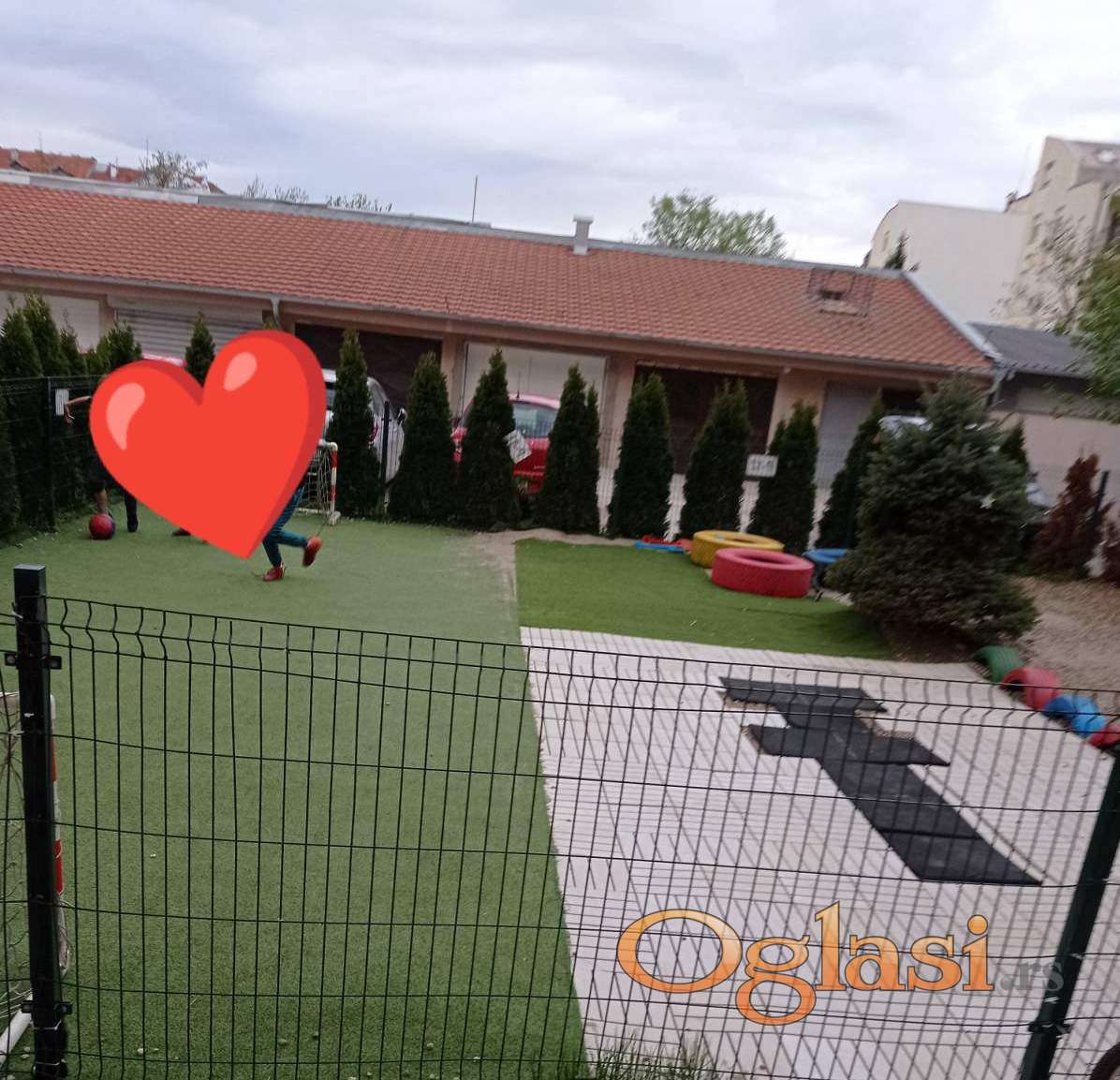 Dvorište zatvoreno za stanare zgrade, u dvorištu ograđeno dečije igralište.