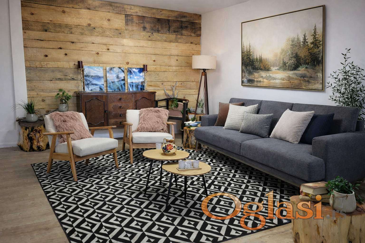 Enterijer je urađen u kombinaciji skandinavskog i rustičnog stila.