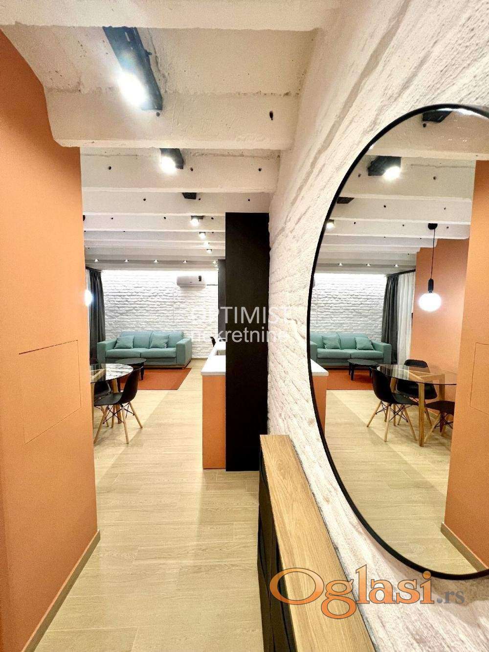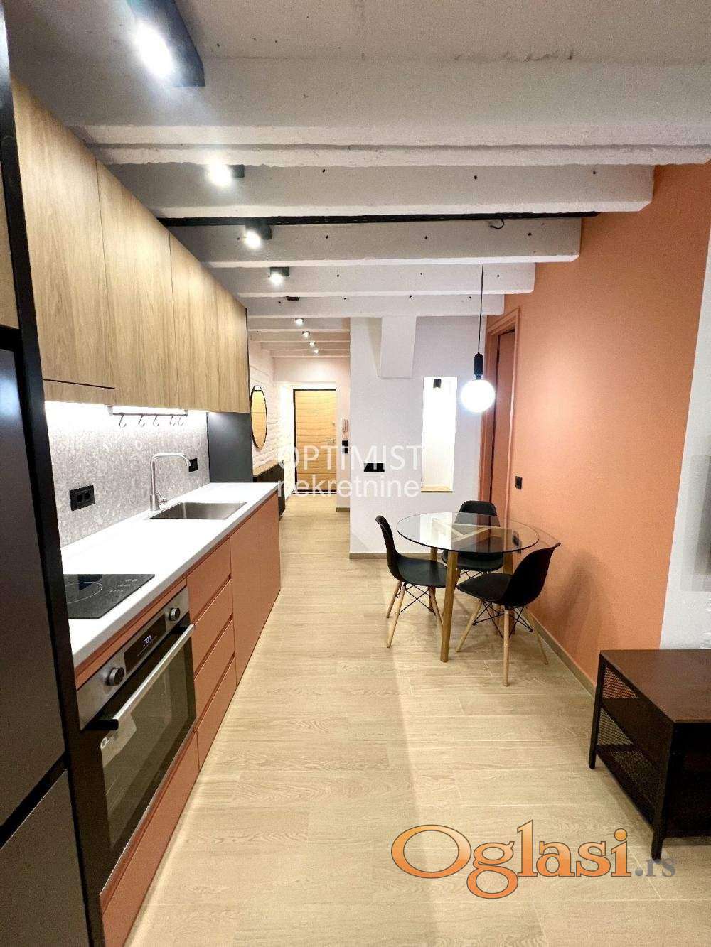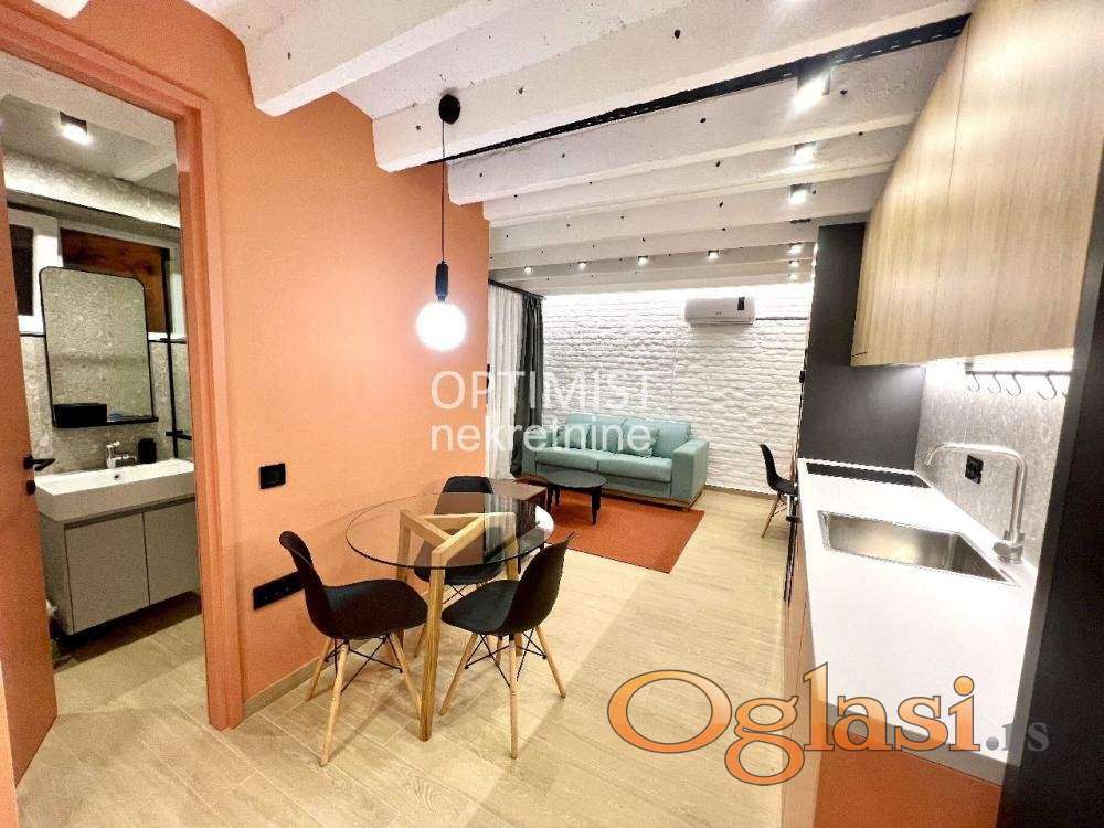 Offered by Optimist Real Estate A thoughtfully designed one-and-a-half-room apartment in a prime location near Partizan Stadium.