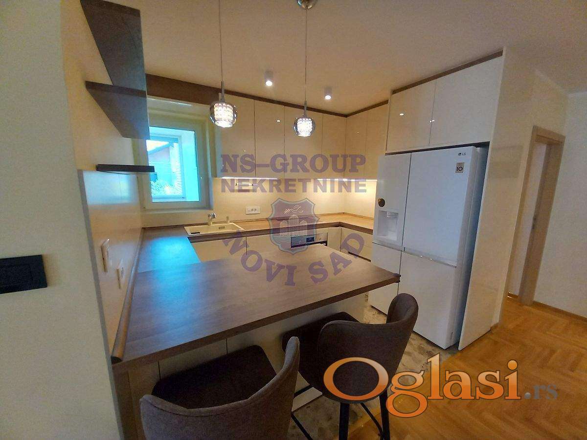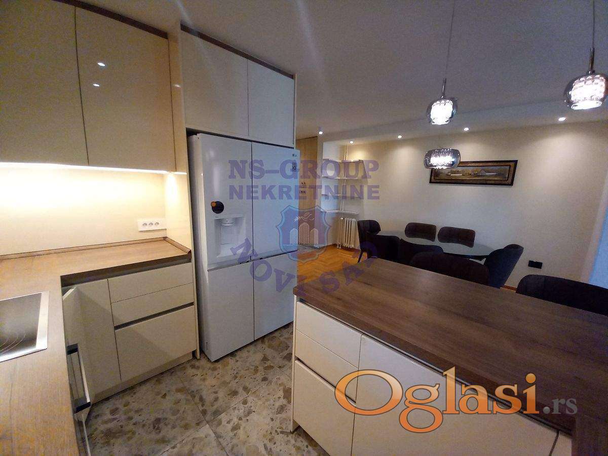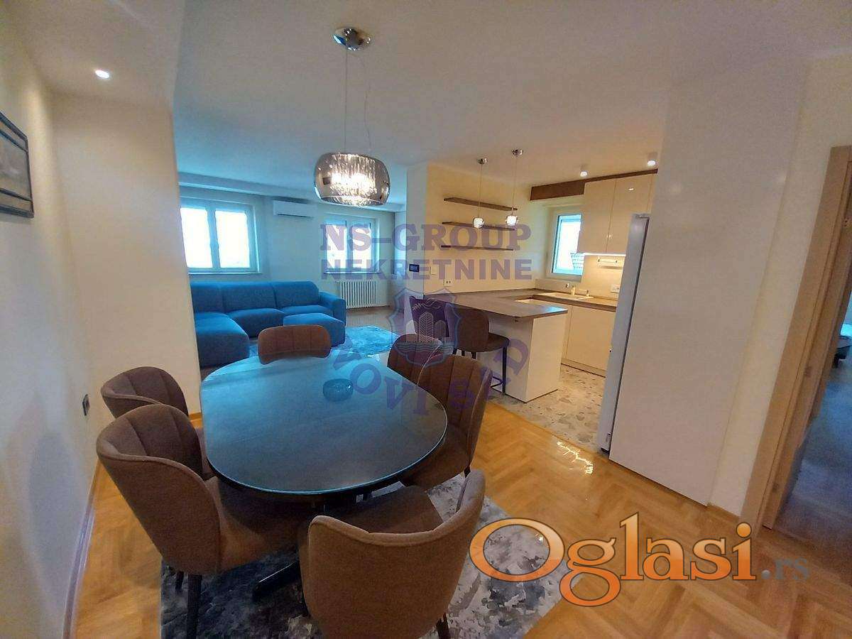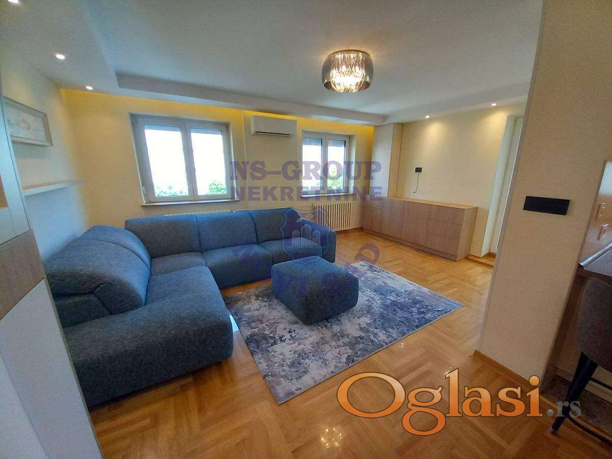 Fantastičan uknjižen i kompletno renoviran stan u odličnoj zgradi. Promenjene su kompletno elektro i vodovodne instalacije, postavljen je hrastov parket prve klase, pvc-stolarija vrhunskog kvaliteta, italijanska keramika i sanitarije. Ugrađen je Vaillant protočni bojler sa posebnim uzemljenjem. Grejanje je daljinsko na gas i računi se plaćaju po potrošnji samo u zimskom periodu. Uvedena je gigabitna mreža za internet. Raspored stana je maksimalno iskorišten sa ogromnim dnevnim boravkom spojenim sa trpezarijom i kuhinjom. Spavaći deo je potpuno odvojen sa svojim kupatilom. Ugrađene su dve inverter klime. U ceni je kompletan nameštaj osim trpezarijskog stola i slika. Moguće je razgledanje tokom celog dana. Uknjiženo je na ime prodavca bez tereta i moguća je prodaja i putem stambenog kredita. Terasa od 6m2 nije u kvadraturi i ona je ustakljena u pvc portali koji se podižu na elektro podizače. Stan ima svoj pripadajući podrum. Nekretnina koja je za svaku preporuku i lako može biti odličan četvorosoban stan. Cena je za dogovor.KONTAKTIRAJTE NAS PUTEM: