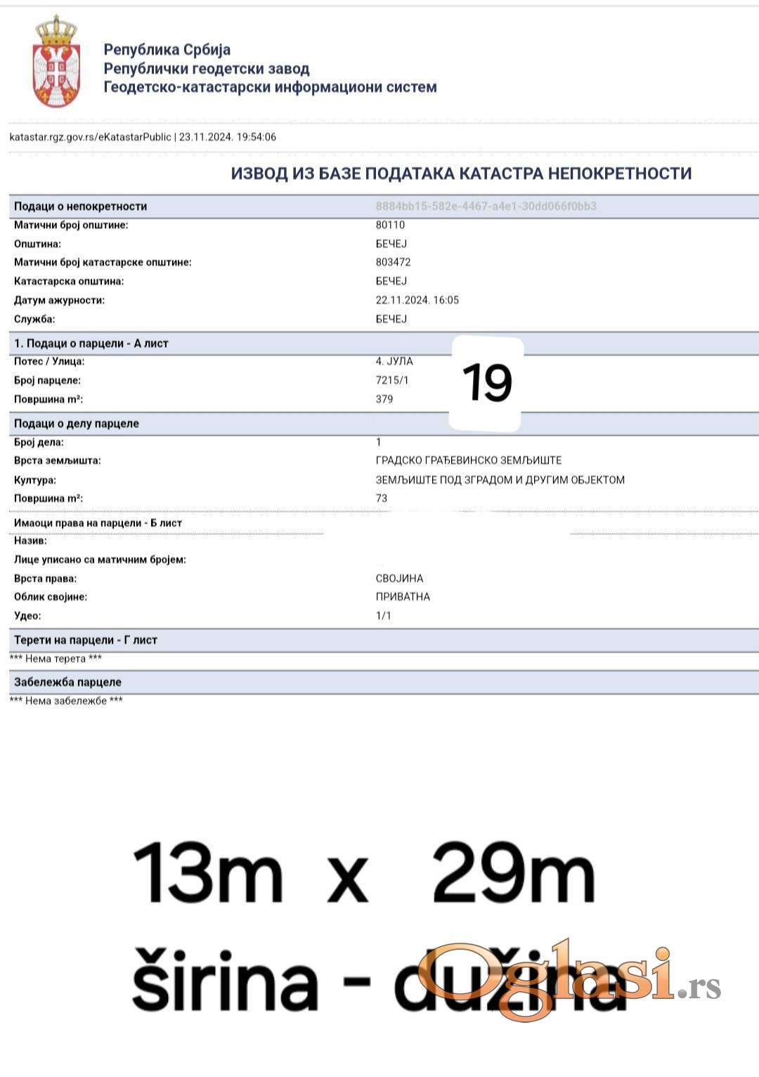 | Površina zemljišta: | 379m2 |