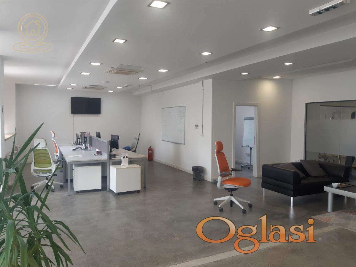 Iznajmljuje se moderan i potpuno namešten poslovni prostor u novijoj zgradi, na odličnoj lokaciji nedaleko od Beograda na vodi. Prostor je modularnog koncepta i može se lako prilagoditi potrebama zakupca, što ga čini idealnim za različite tipove kancelarijskih delatnosti.