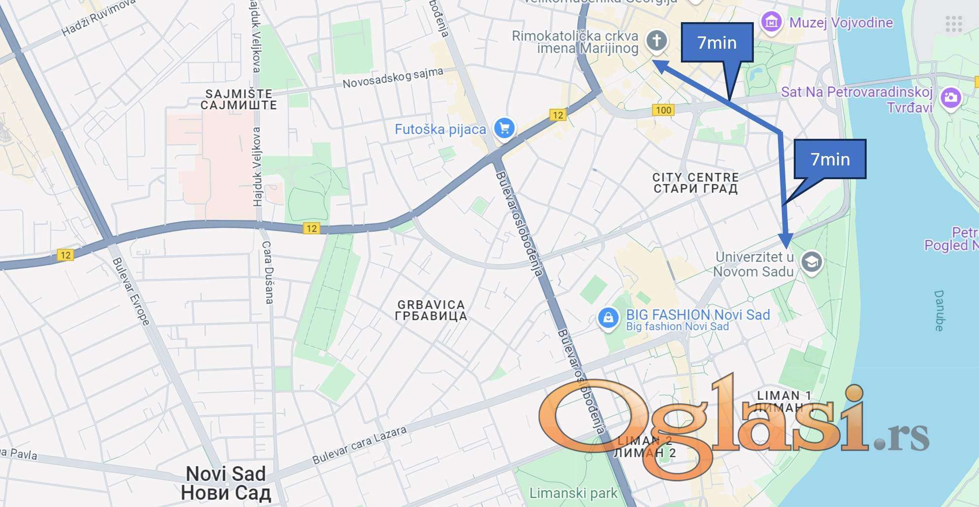 Lokacija stana je 7min peške od samog centra (Miletićev spomenik), 7min od Univerziteta, 2min od Dunavskog parka, 10min od Promenade(BIG-a), 3min od Dunavskog keja, 3min od gradskog prevoza (nekoliko najvažnijih gradskih linija: 1, 3, 4, 7, 8 itd).