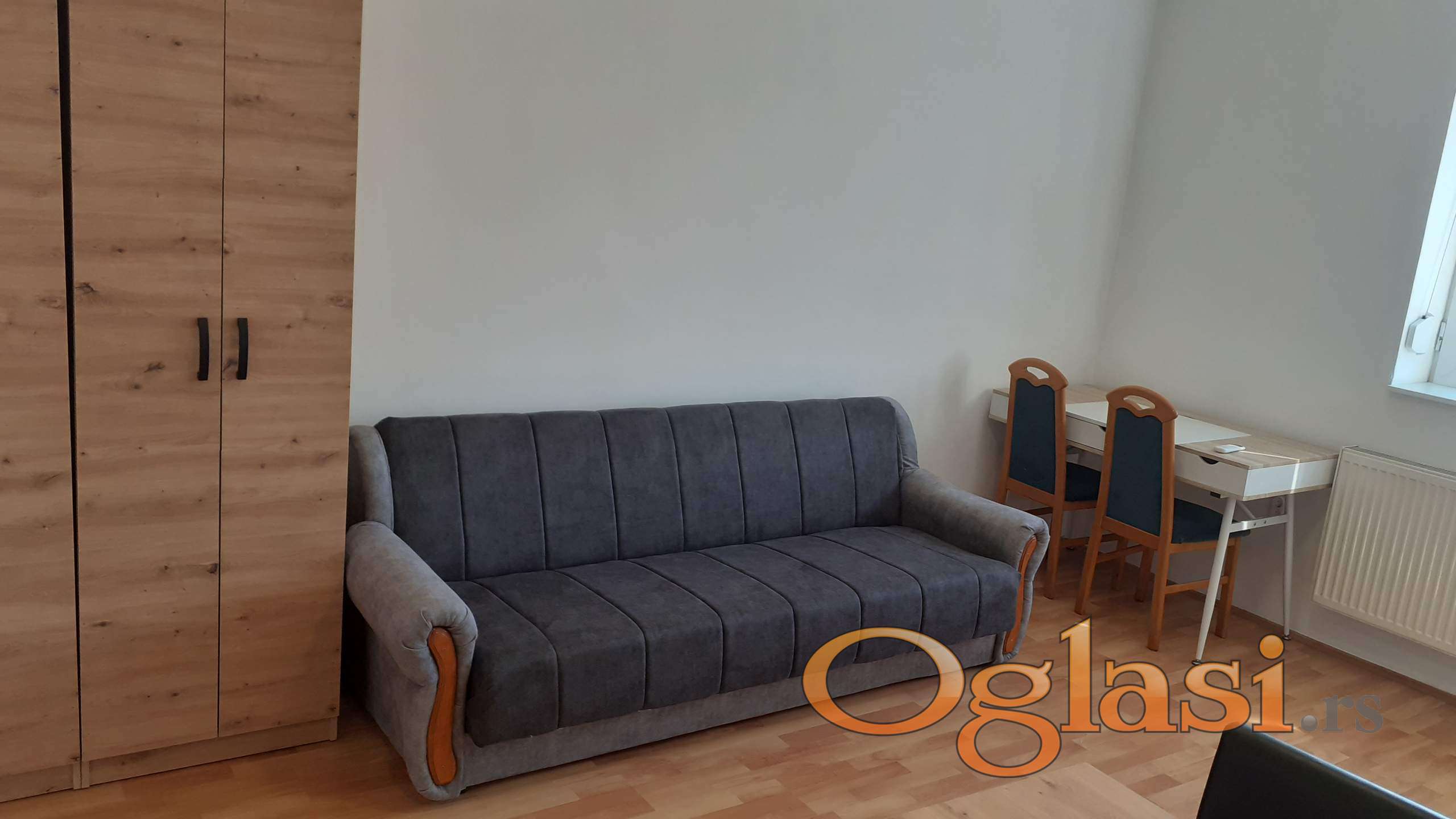 Stan ima sobu sa dva ležaja, dva ormana, kuhinjski sto, kompjuterski sto.