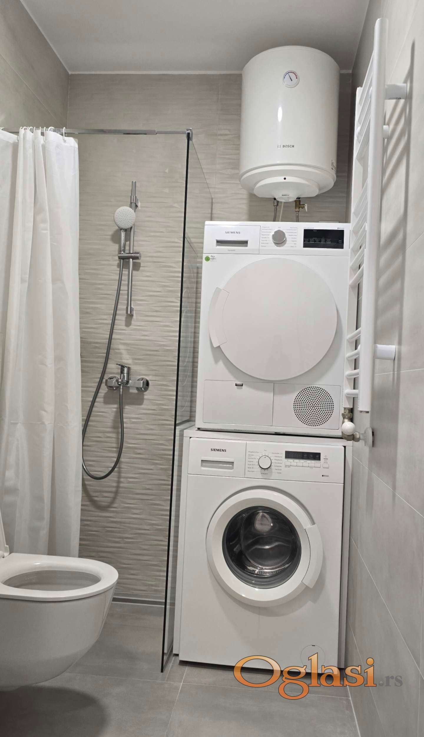 Etažno grejanjena gas(plaća se po utrošku, tv, veš mašina, mašina za sušenje veša, klima.