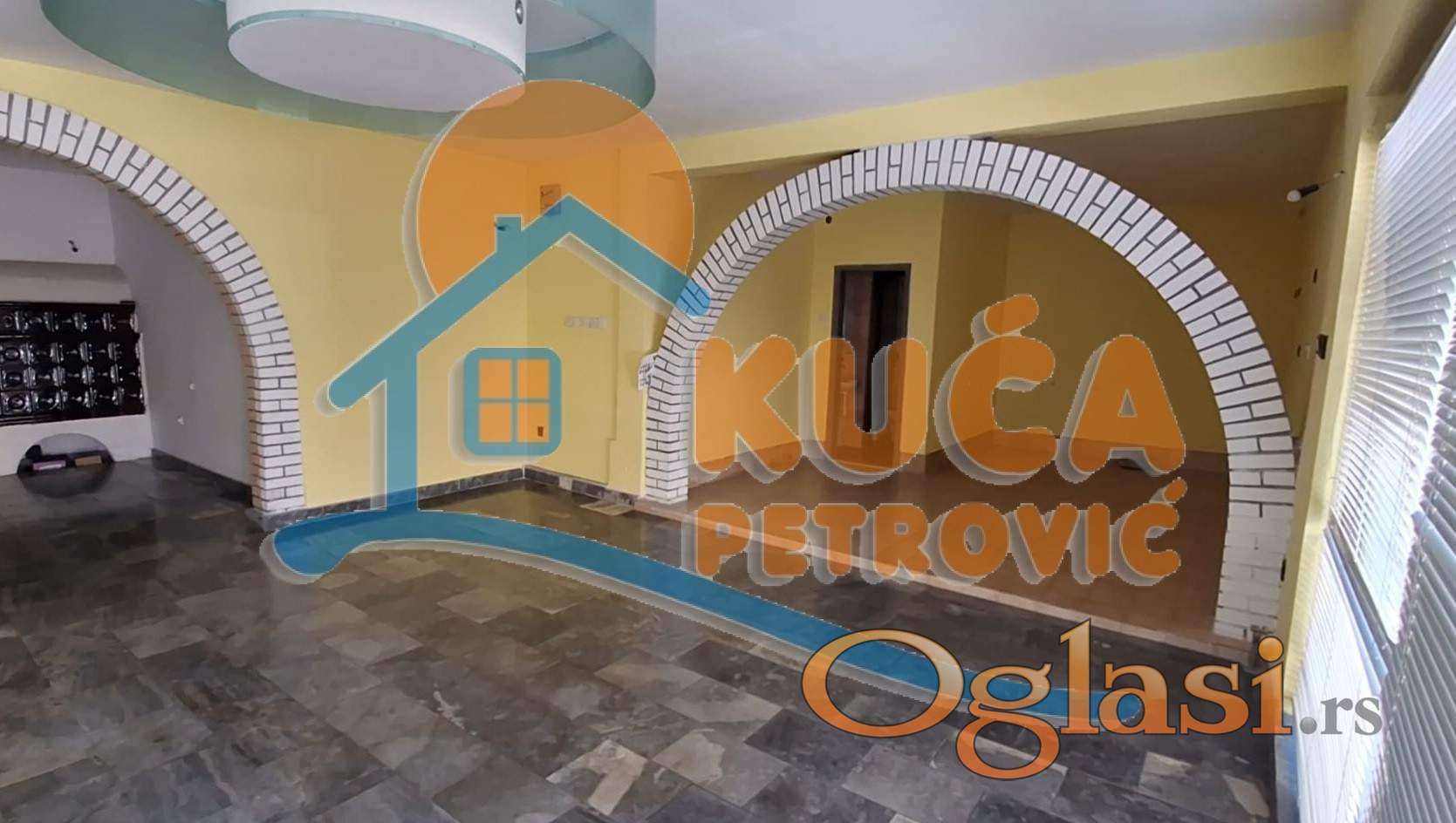 Kuća se sastoji od velikog podruma sa kupatilom, prizemlja u čijem je sastavu lokal od 80 m2 i velike dnevne sobe sa kuhinjom oko 80 m2, wc, kupatilo i ostava. U potkrovlju se nalazi 5 sobe i veliko kupatilo. Svaka soba izlazi na terasu.