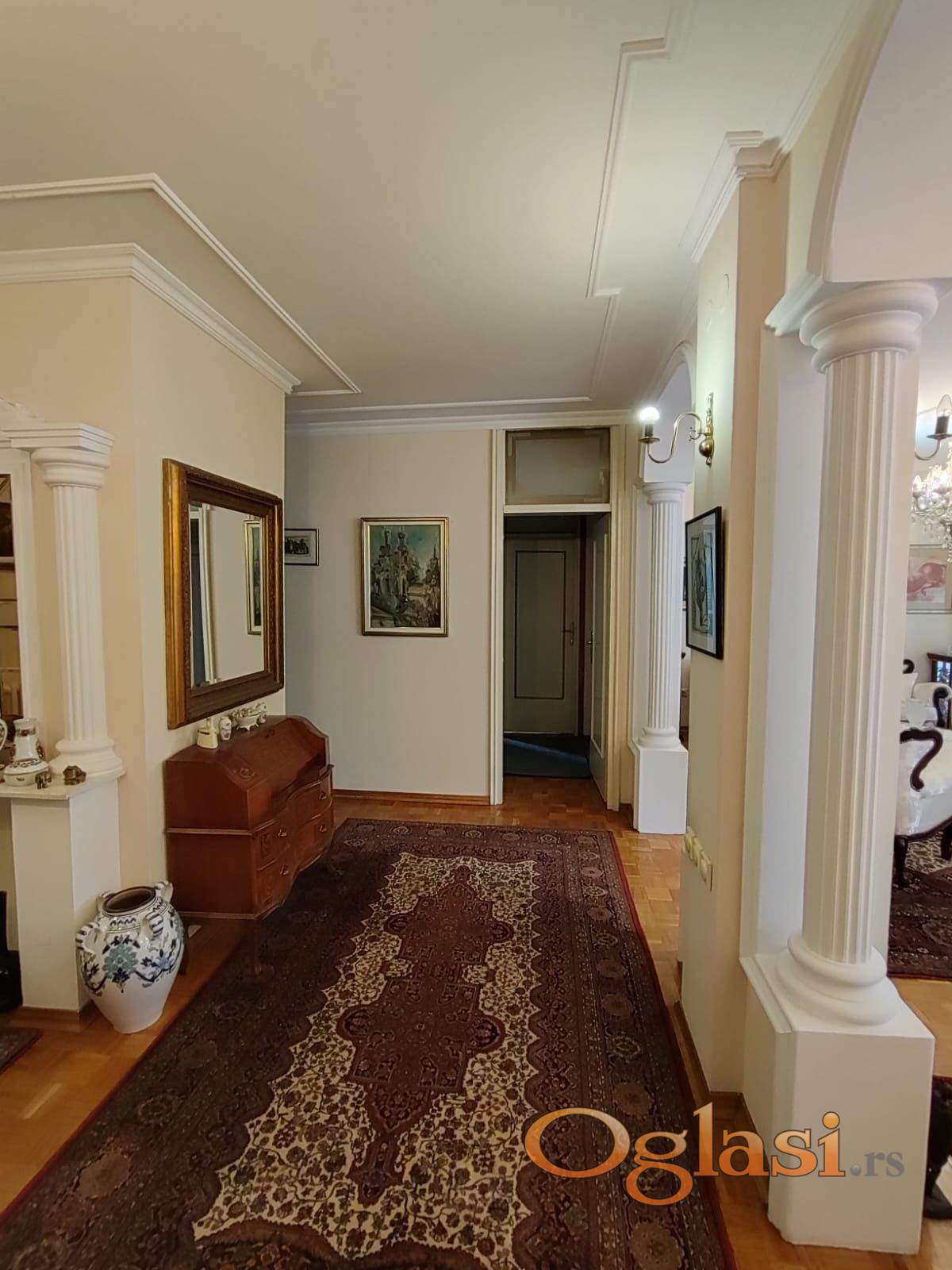 Stan je kompletno namešten i ima odličan raspored stana. Iz predsoblja se ulazi u dnevni boravak sa trpezarijom, velikom terasom, odvojenom kuhinjom i toaletom.