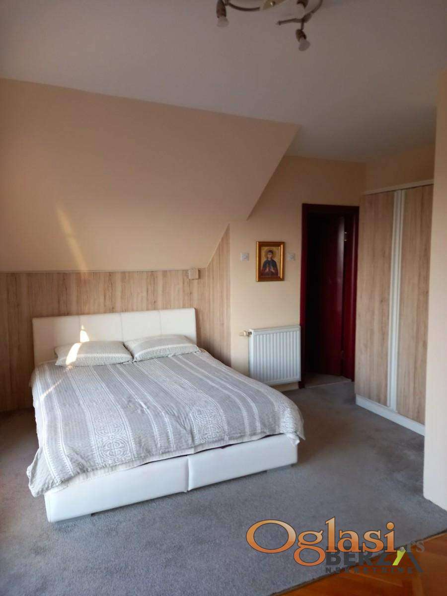 - Prizemlje: garaža 23 m² i stambeni prostor 147 m² - Potkrovlje: 99 m² sa spavaćim sobama i balkonima