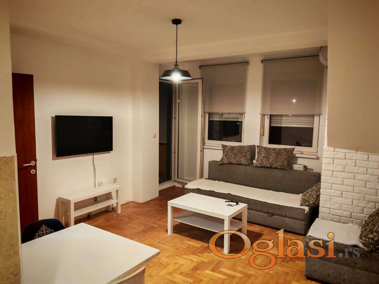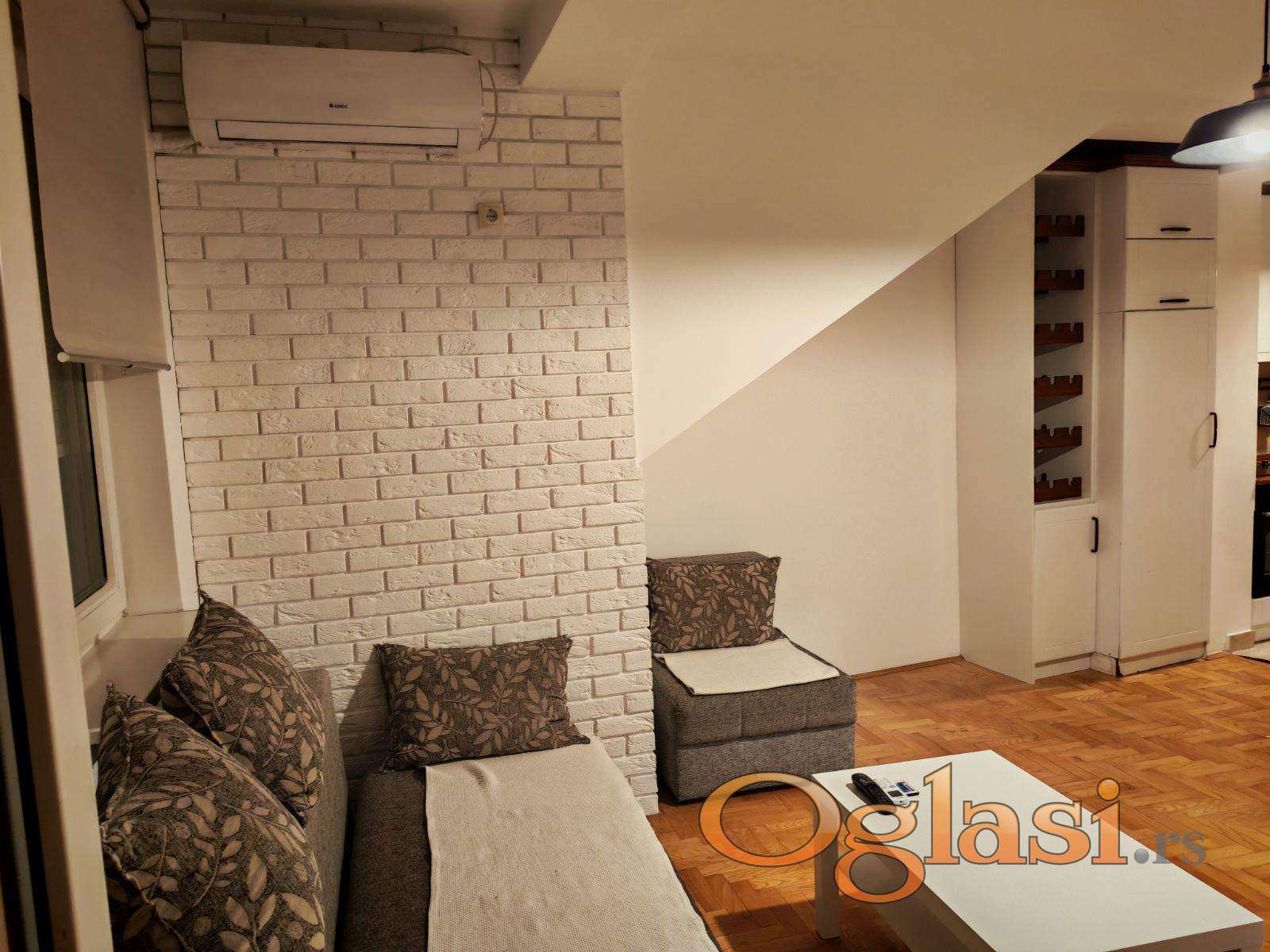 Izdaje se kompletno namešten manji dvosoban stan kod Riblje pijace. Kuhinja je odvojena, ima terasu koja gleda prema dvorištu zgrade i takodje parking u dvorištu. Parking nije rezervisan, svi stanari mogu da se parkiraju kad ima mesta. Stan je useljiv 01.05.26.
