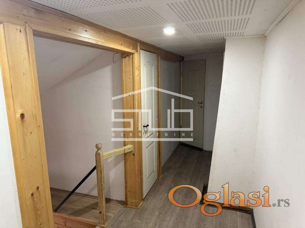 Površina: 75m2 (prvi nivo: 45m2 (uknjiženo) + drugi nivo: 30m2)