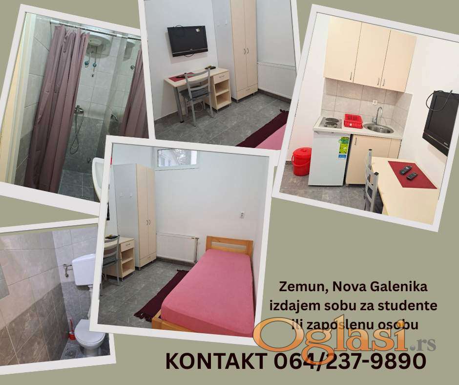 Zemun, naselje Nova Galenika, izdajem sobu za zaposlenu osobu, u prizemlju porodične kuće sa zasebnim ulazom. Cena 230€ sa uračunatim svim troškovima: struja, voda, grejanje, katv, internet. Plaćanje mesečno ,depozit obavezan. Autobus 84,612 Kontakt 0642379890
