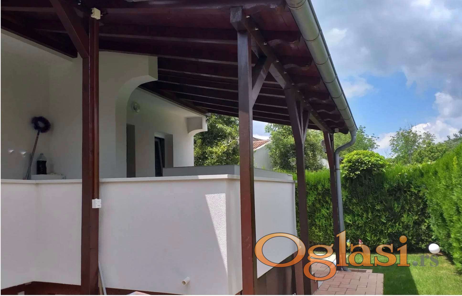 Kompletno je renovirana kvalitetnim materijalima, opremijena potpuno novom belom tehnikom, inverter klimama najnovije generacije/sve u garantnom roku/, baštenskim mobilijarom, izuzetnim i raritetnim nameštajem od ružinog drveta, slikama.. a oivičena je sa oko 50 dužnih metara visokih i raskošnih tuja, koje uz drveni trem daju potpunu intimu u zadnjem dvoristu.
