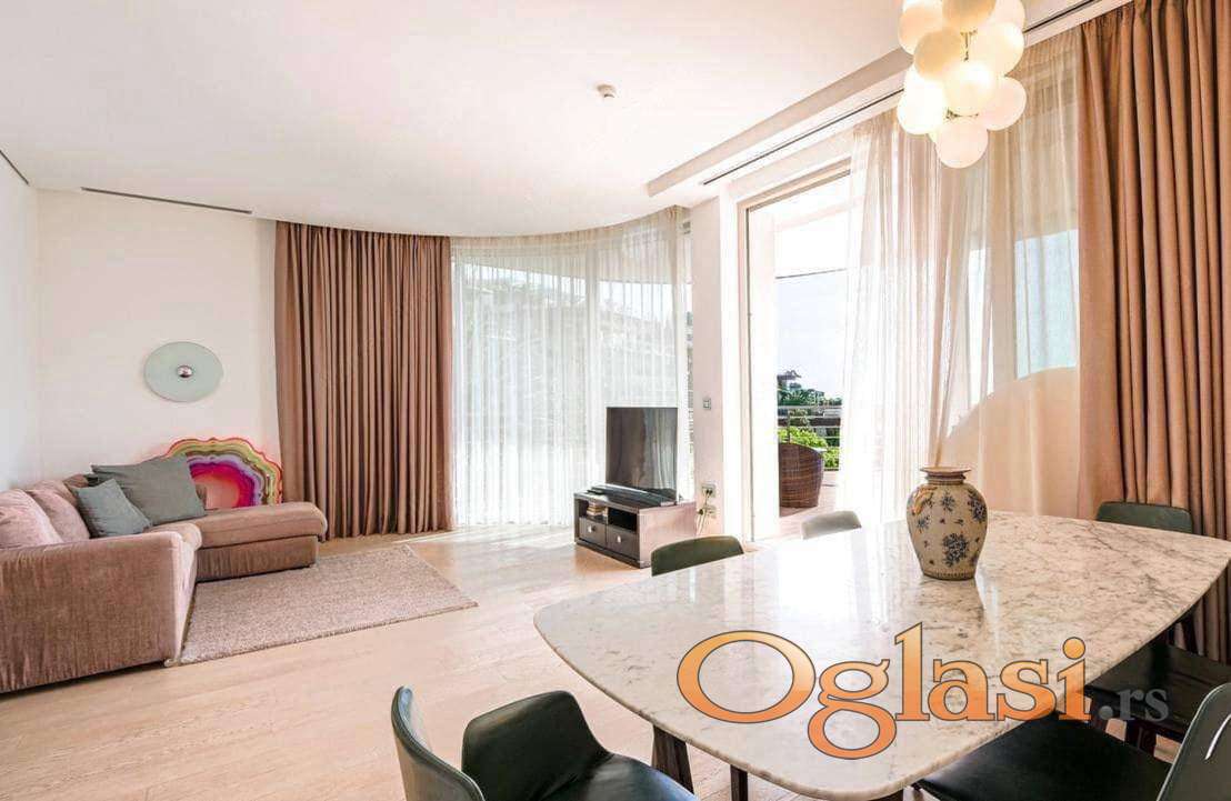 Apartman je u savršenom stanju. Opremljen je visokokvalitetnim namještajem, dekorom, tekstilom i rasvjetom.