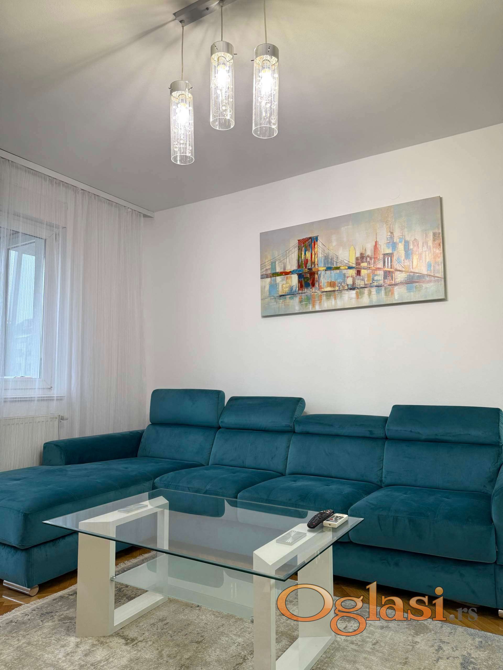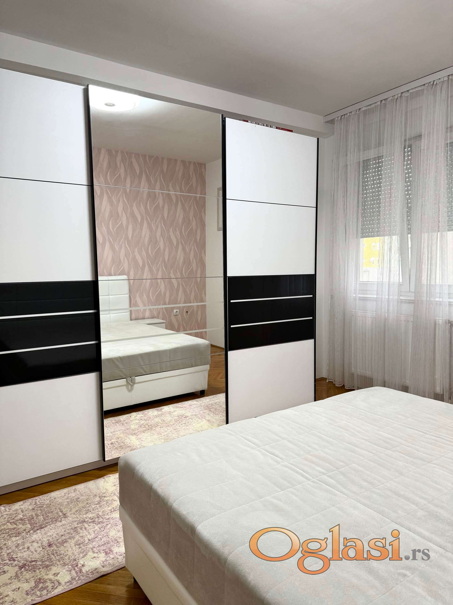 Stan se sastoji od dnevne sobe sa kuhinjom i trpezarijom, spavace sobe ,kupatila i ustakljene terase.U potpunosti je opremljen novim i kvalitetnim nameštajem kao i belom tehnikom(tv,klima,veš mašina,frižider,šporet).Parking za stanare dostupan u dvorištu zgrade.Stan odiše prijatnom atmosferom i idealan je za one koji žele miran dom u centru grada.