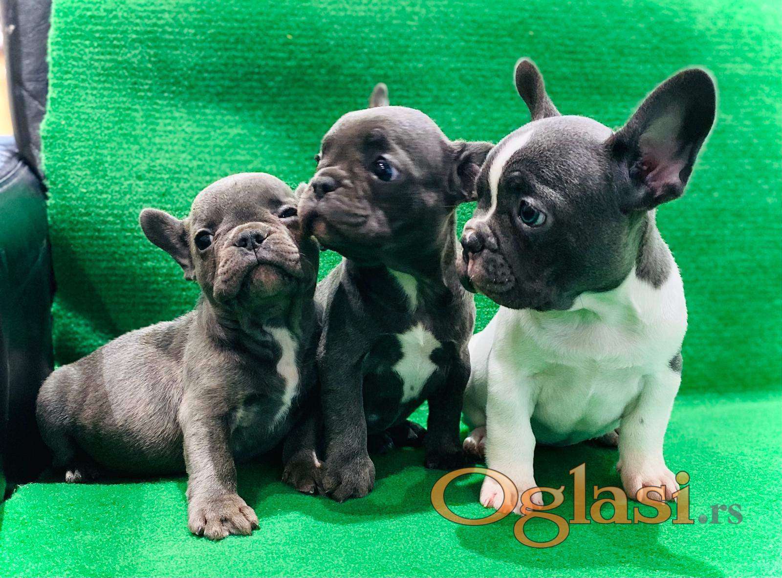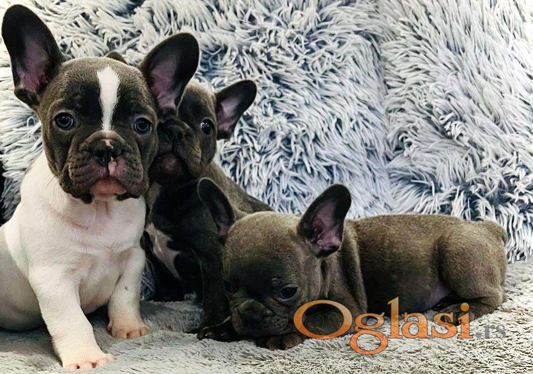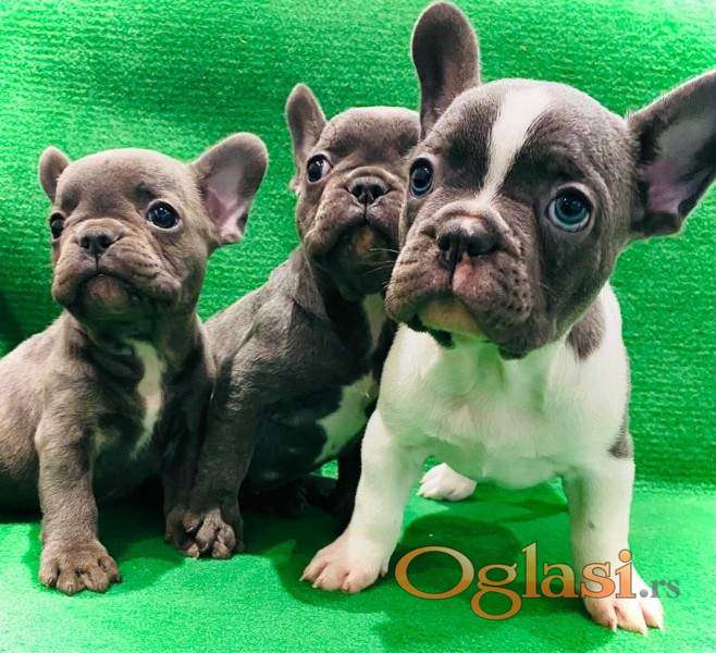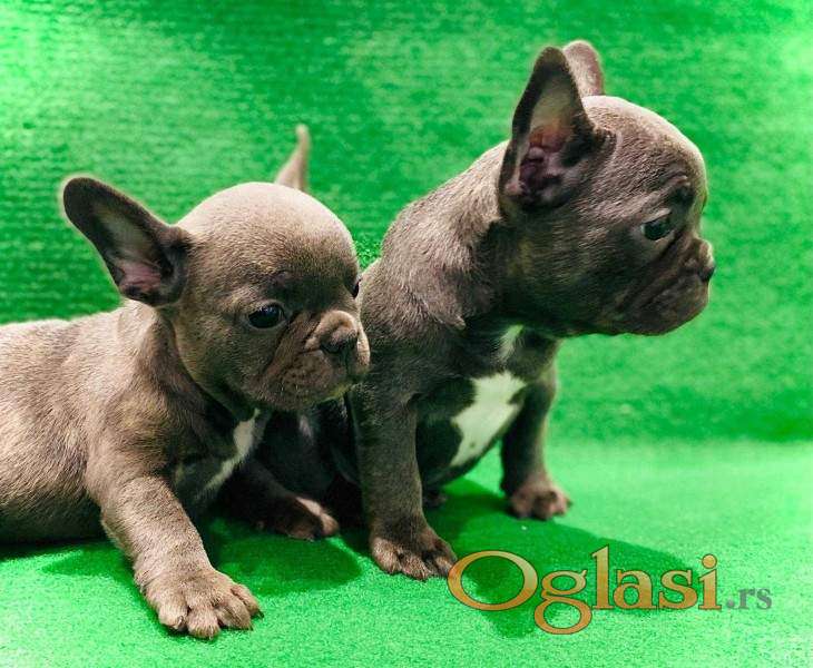 Štenci francuskog buldoga egzotične plave boje bez tigrine, veseli umiljati, stručno odnegovani, izrada pasoša i ostale dokumentacije. Moguća dostava u Srbiji, takodje i u zemlje EU povoljno!