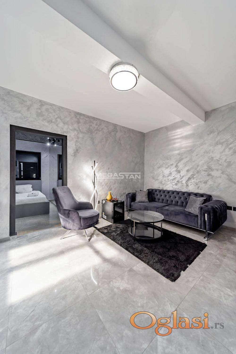 Luksuzno opremljen stan u nivou prizemlja, sa sopstvenim dvorištem i garažom.