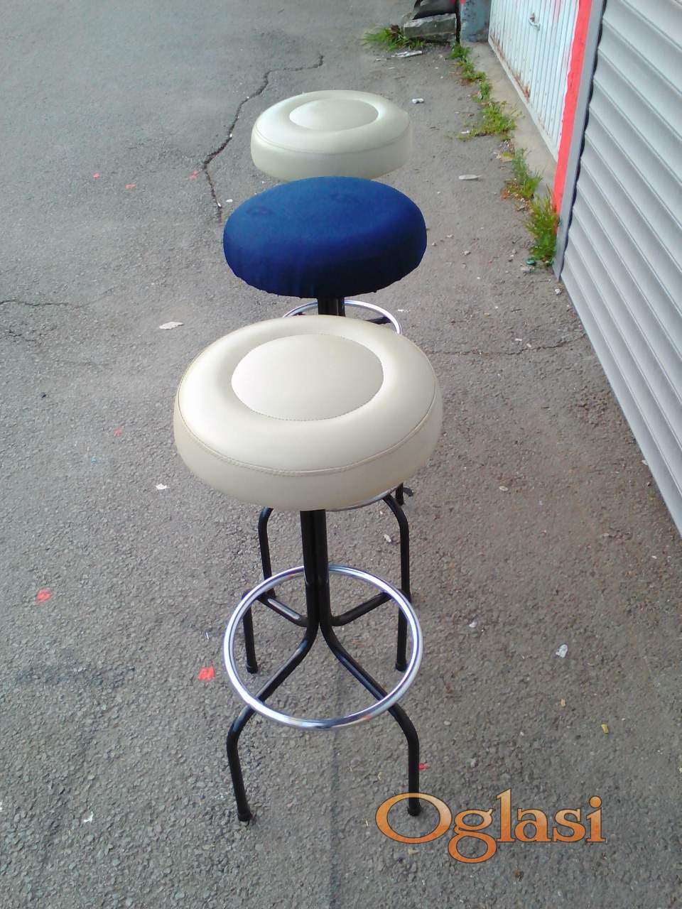 METALNE barske stolice domaće proizvodnje, visina sedišta 80 cm, prečnik 34, izuzetno jake i stabilne, BESPREKORNO očuvane.