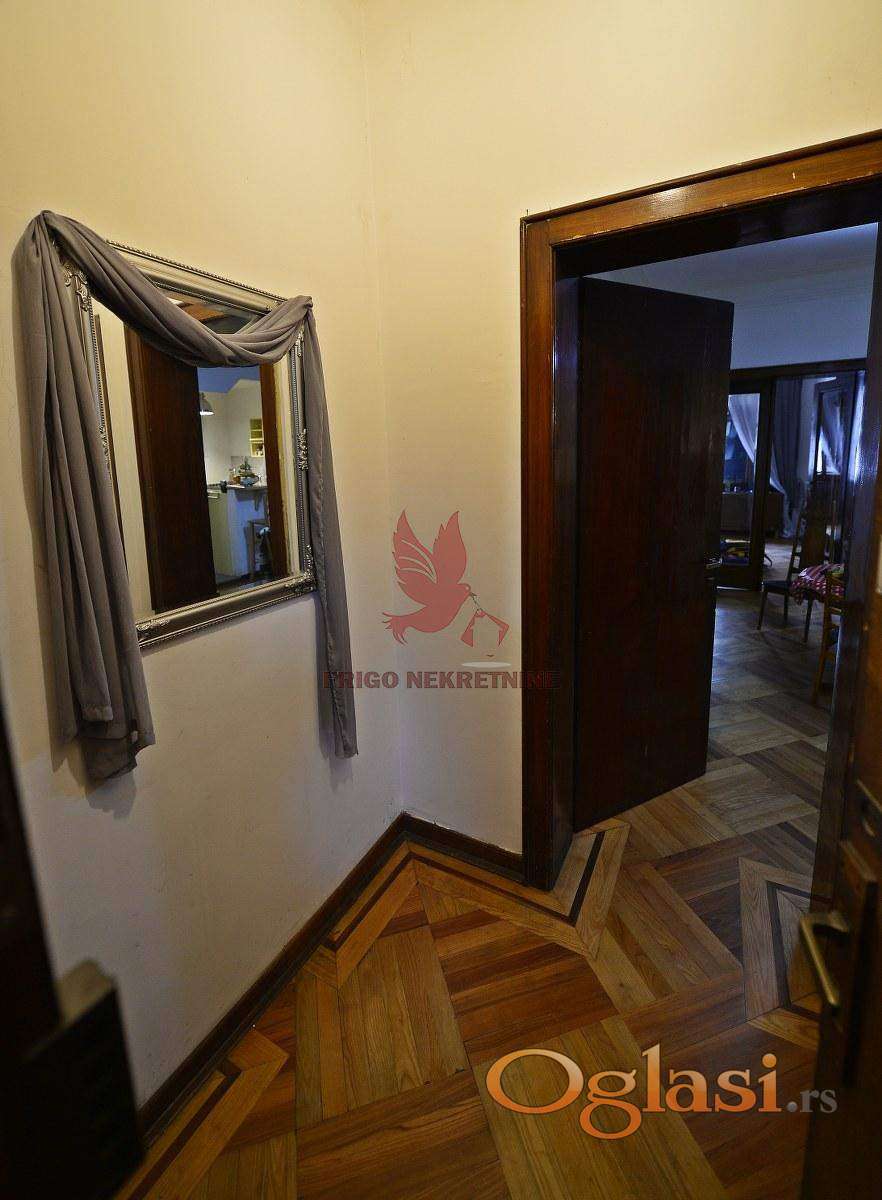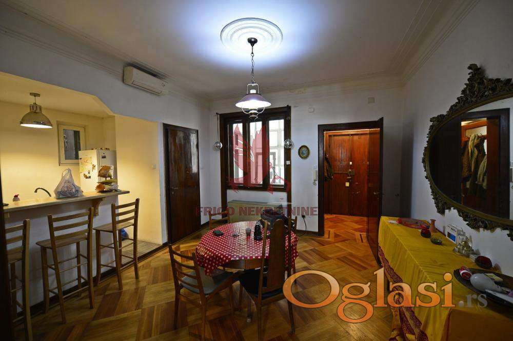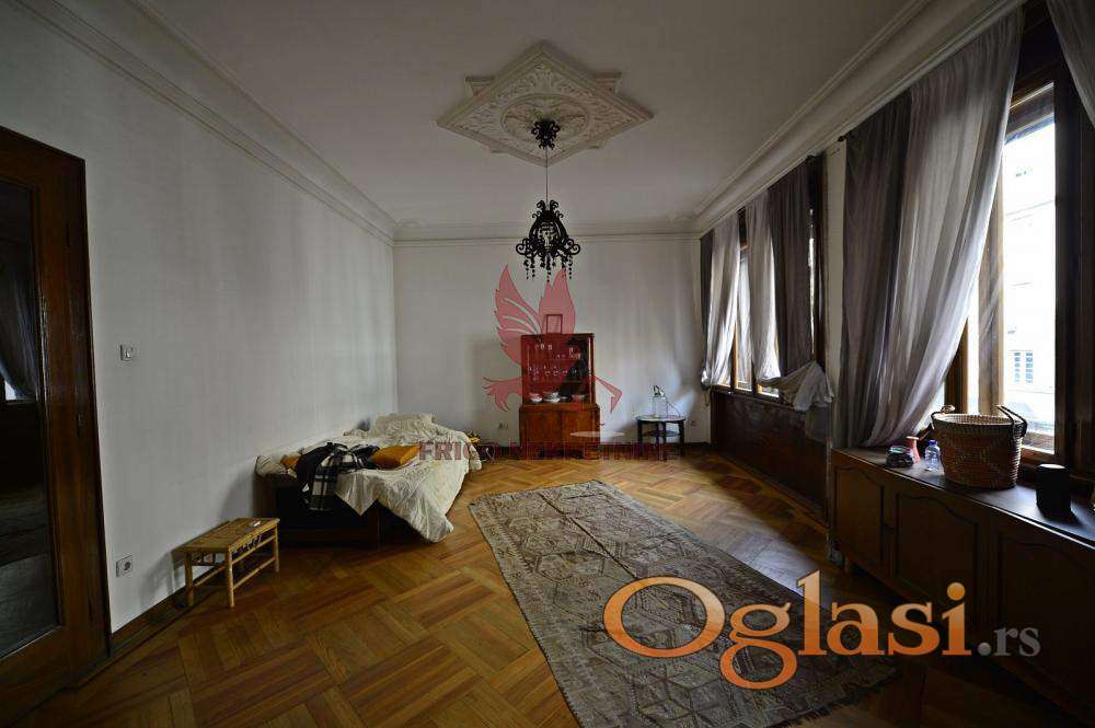 Stan je pravi dragulj među starogradskim nekretninama – sa visokim plafonima od 3 metra, dekorativnim gipsanim radovima, lepo očuvanim šarmantnim parketom koji unosi toplinu i eleganciju u svaki kutak prostora.