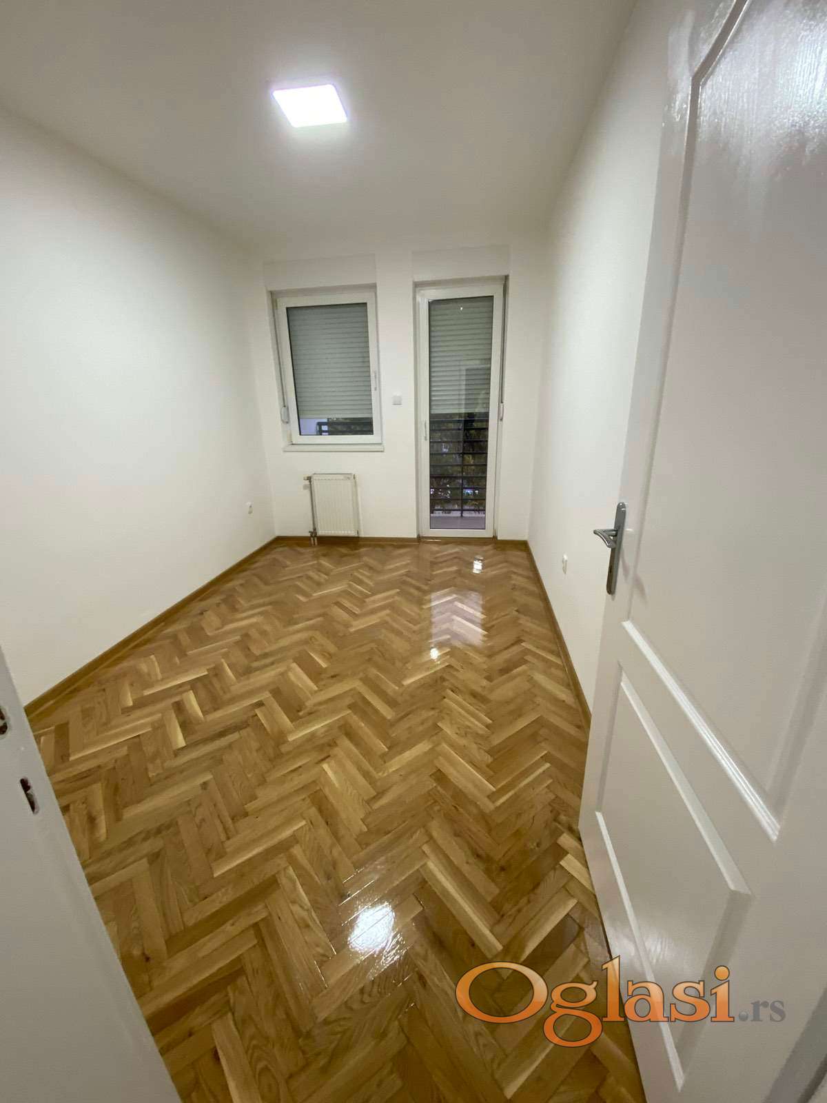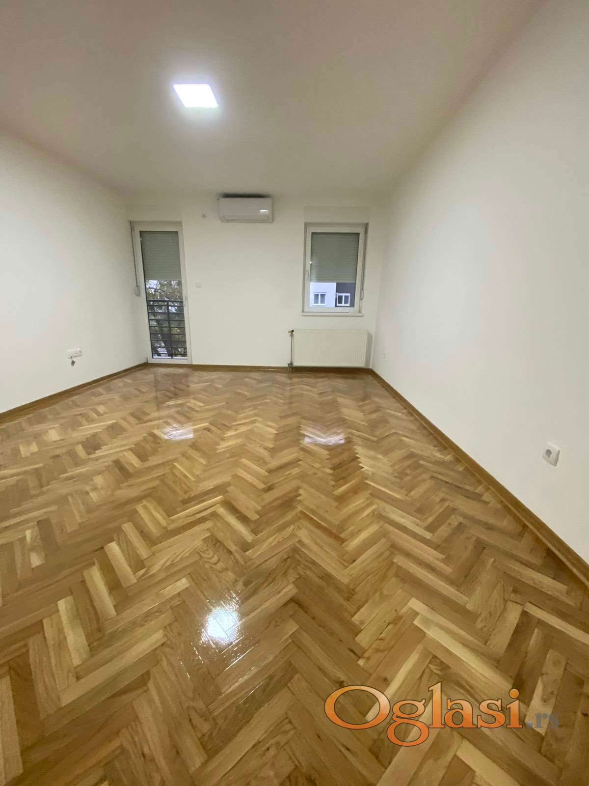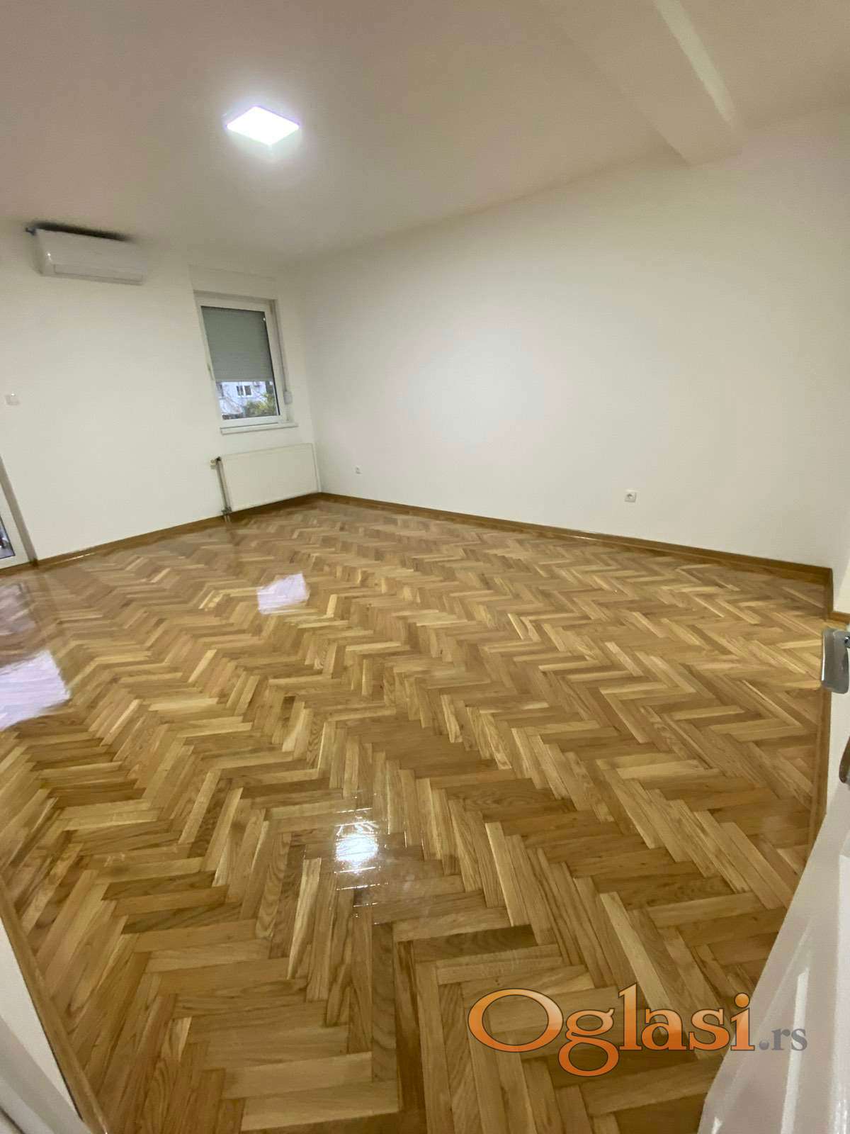 Ovaj ulicno orijentisan stan, ima prelep parket visokog sjaja. Kuhinja koja je odvojena od dnevne sobe je prostrana i sadrzi i prozor.