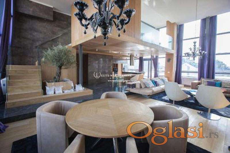 Izuzetno lep i luksuzan stan, dvostrano orijentisan. Sastoji se od prostranog dnevnog boravka u čijem sklopu su i kuhinja i trpezarija. Kuhinja je opremljena visoko kvalitetnom kuhinjskom opremom. Dnevni boravak je izuzetno svetao i izlazi na dve terase, čime se stiče utisak ogromne prostranosti. Donji nivo stana ima i toalet za goste. Galerija, koja se nalazi iznad kuhinjskog dela, ima pogled na dnevnu sobu i organizovana je kao spavaća soba sa luksuznim kupatilom. Kombinacija prirodnih materijala, jednostavnog nameštaja pravih linija i moderne rasvete, daje nesvakidašnji doživljaj prostora.
