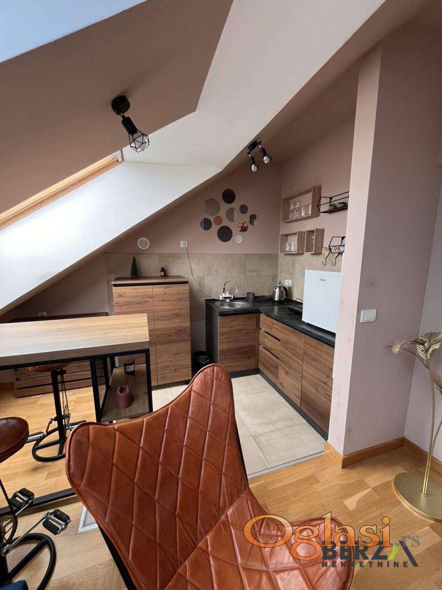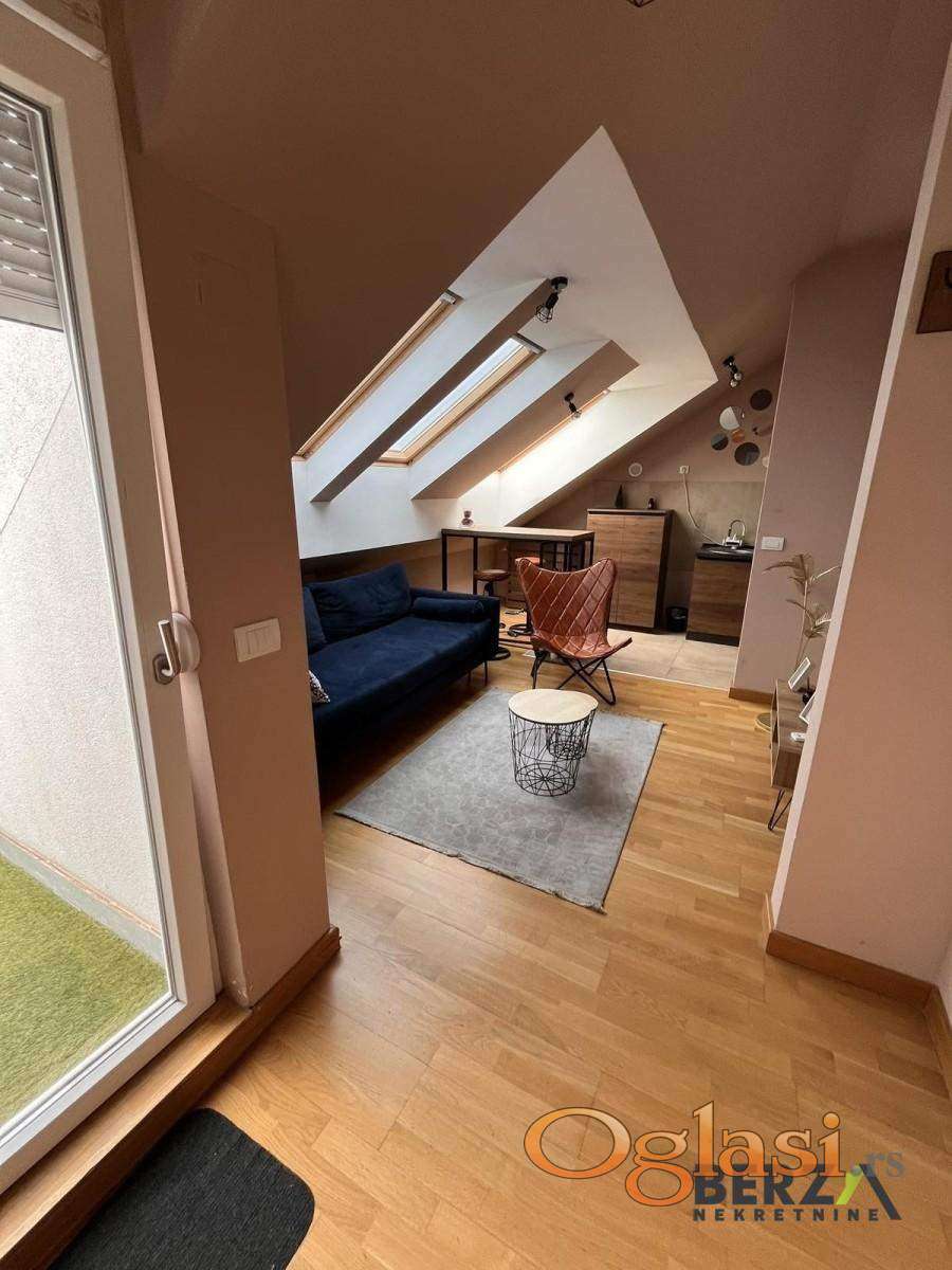 Agencijska šifra: 9111696.Izdaje se nameštena garsonjera (31 m2) na 4. spratu stambene zgrade sa liftom na Podbari. Stan je moderno opremljen, sa velikom terasom i ostavom u podrumu. Useljivo od 20.05.2026. Potreban depozit u visini jedne mesečne zakupnine. Agencijska provizija iznosi 50% od vrednosti prve mesečne zakupnine i plaća se jednokratno. Za više informacija pozovite na: 063/749-95-65 i 061/118-44-90 Berza nekretnine, Novi Sad, reg broj posrednika 1020