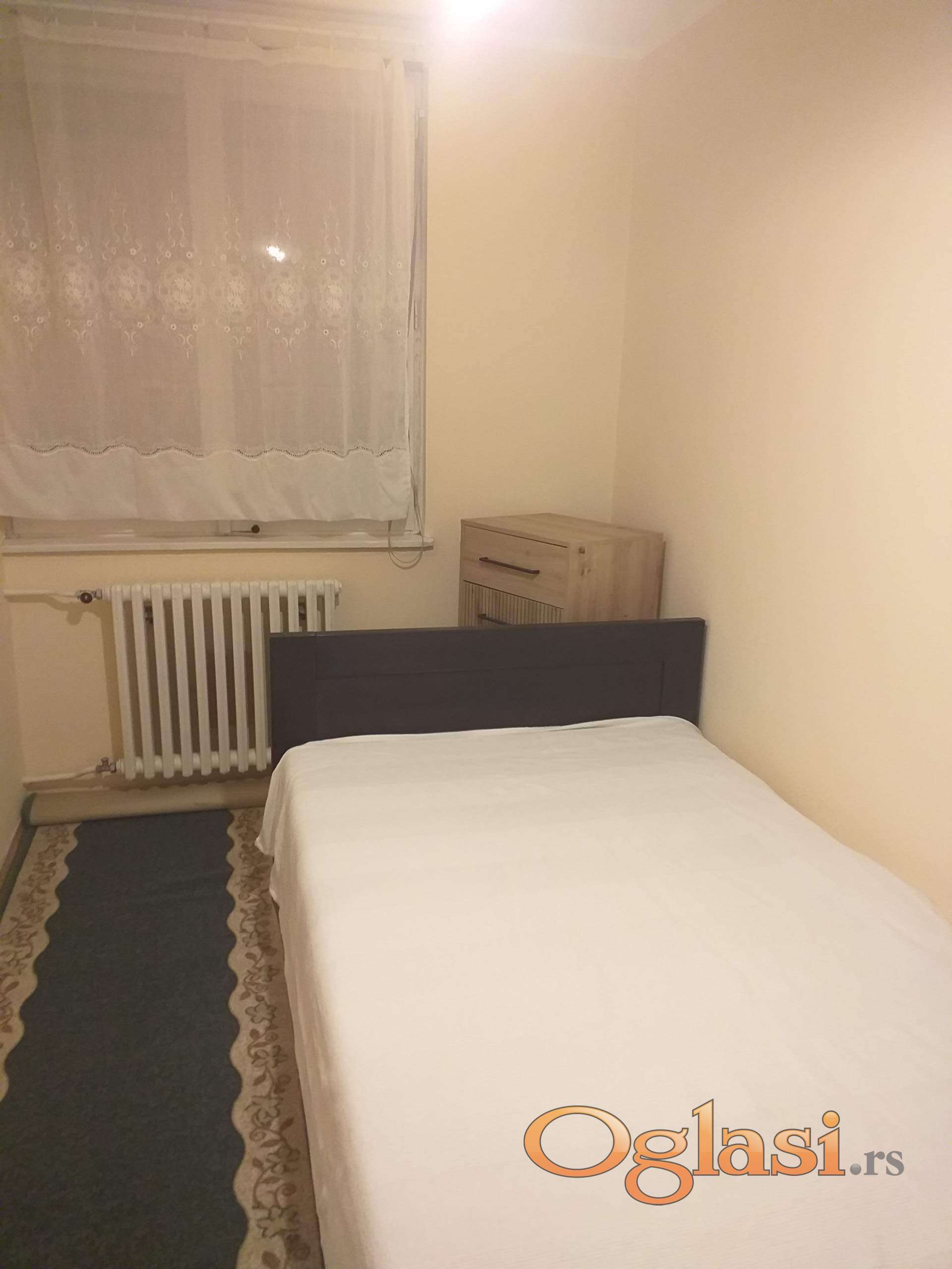Izdajem renoviran dvoiposoban stan, dvostrano orijentisan. Dnevna soba sa ugaonom sofom i pomoćnim ležajem, dve spavaće sobe sa novim krevetima, novo kupatilo, nova kuhinja.