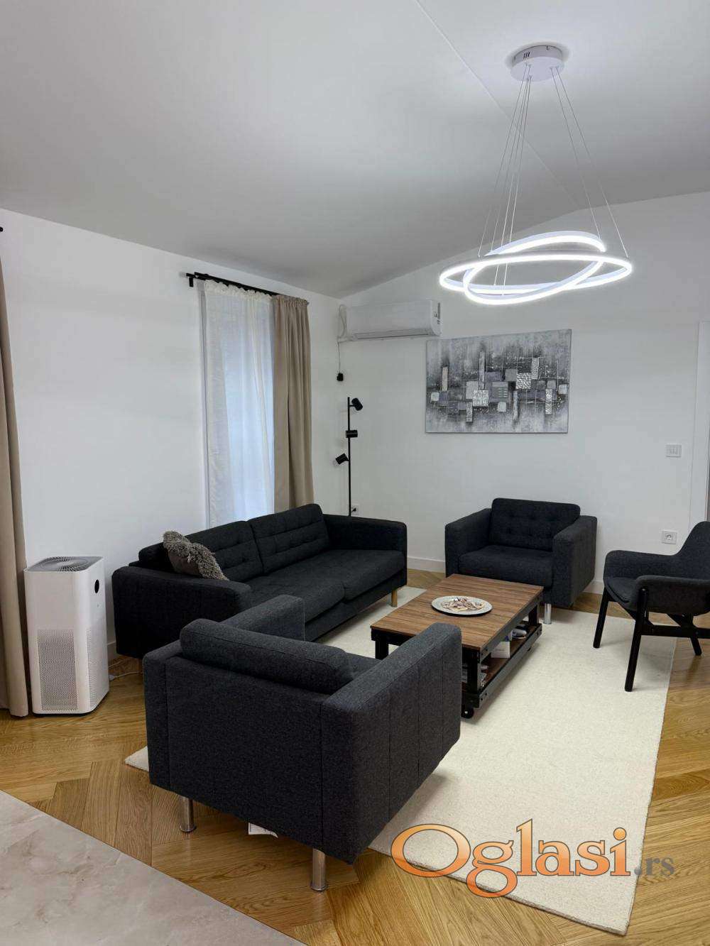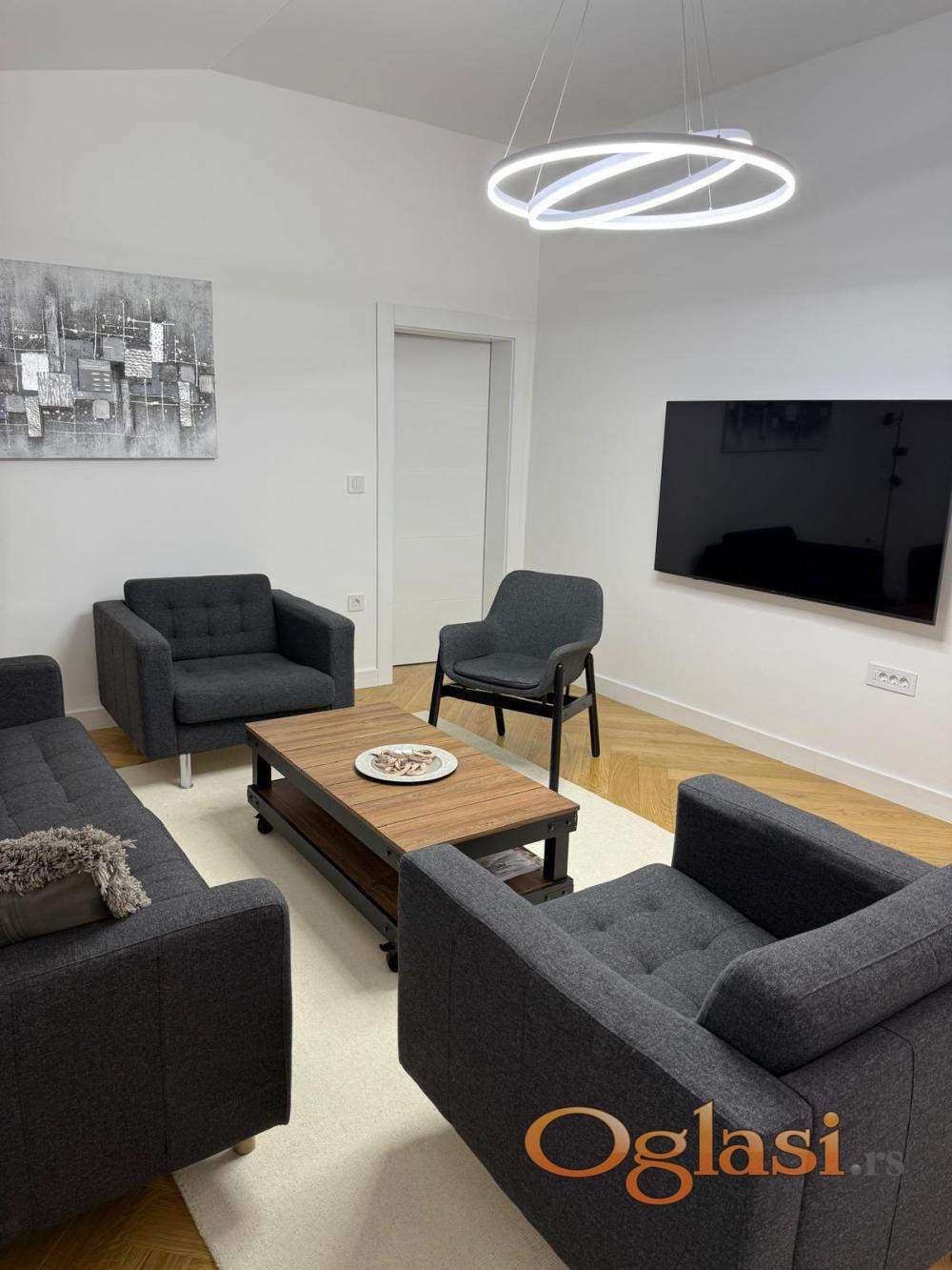 Izdaje se stan kompletno renoviran,pogodan za stambeni i poslovni prostor.Stan je kompletno renoviran, poseduje dva kupatila, kuhinju sa trpezarijom, dve spavace sobe i veliku dnevnu sobu. Dva parking mesta na koriscenje. Grejanje na inverter klimu i TA pec, podno grejanje. Komplet opremljena kuhinja kao i svi potrebna bela tehnika.