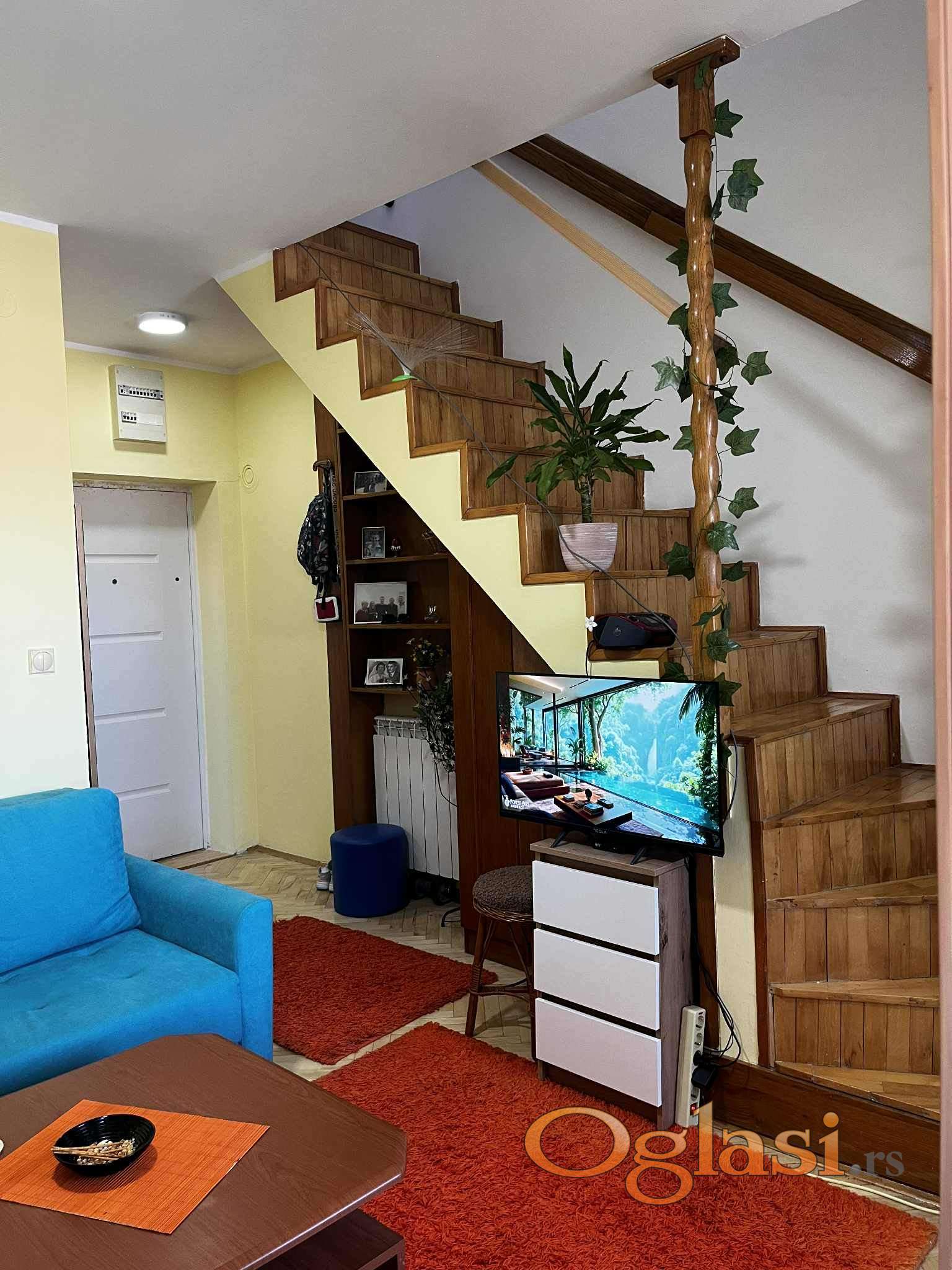 - Stan u dva nivoa, tako da se moze boraviti odvojeno ukoliko je potrebna privatnost gostima, ako neko zeli da odmara, ostali mogu biti na drugom nivou stana.