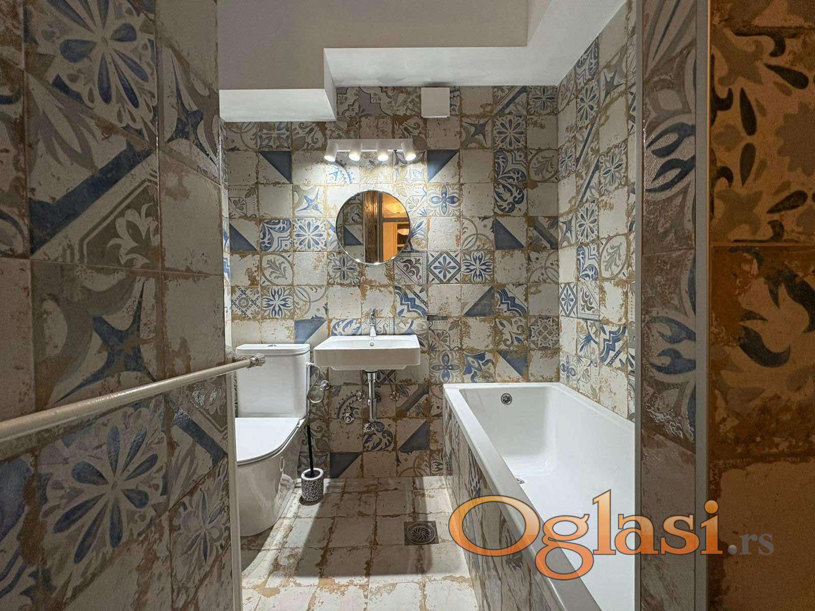 Kupatilo je u potpunosti adaptirano, zamenjene su sve instalacije, postavljena je drvo aluminijum stolarija i ugrađen je nov parket u svim prostorijama.