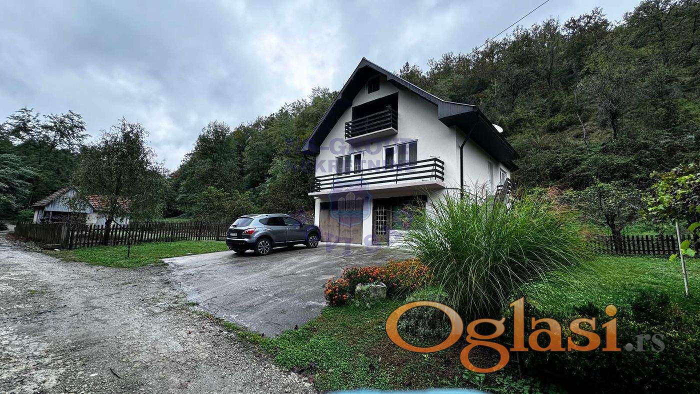 Na prodaju prelepa renovirana kuća smeštena u mirnom, brdovitom i šumovitom području. Kuća je površine 186 m², dok je zemljište koje se prodaje uz kuću površine 17708. m², pruža savršen ambijent za život u prirodi. Idealna za sve koji žele uživati u tišini i privatnosti, uz blizinu prirodnih lepotа. Savršeno za porodice ili vikend odmor. Kuća se sastoji od prostranog dnevnog boravka, kupatila i četiri komforne spavaće sobe. Za više informacija i razgledanje, kontaktirajte nas!
