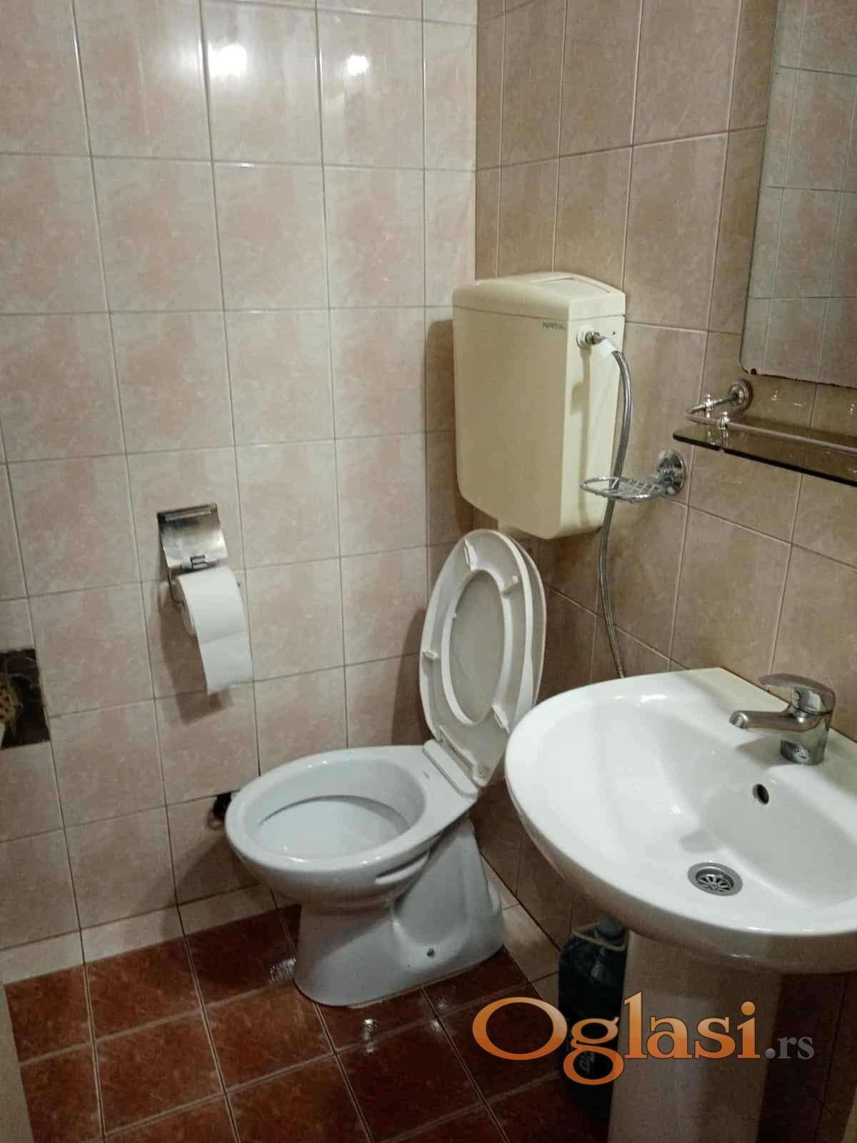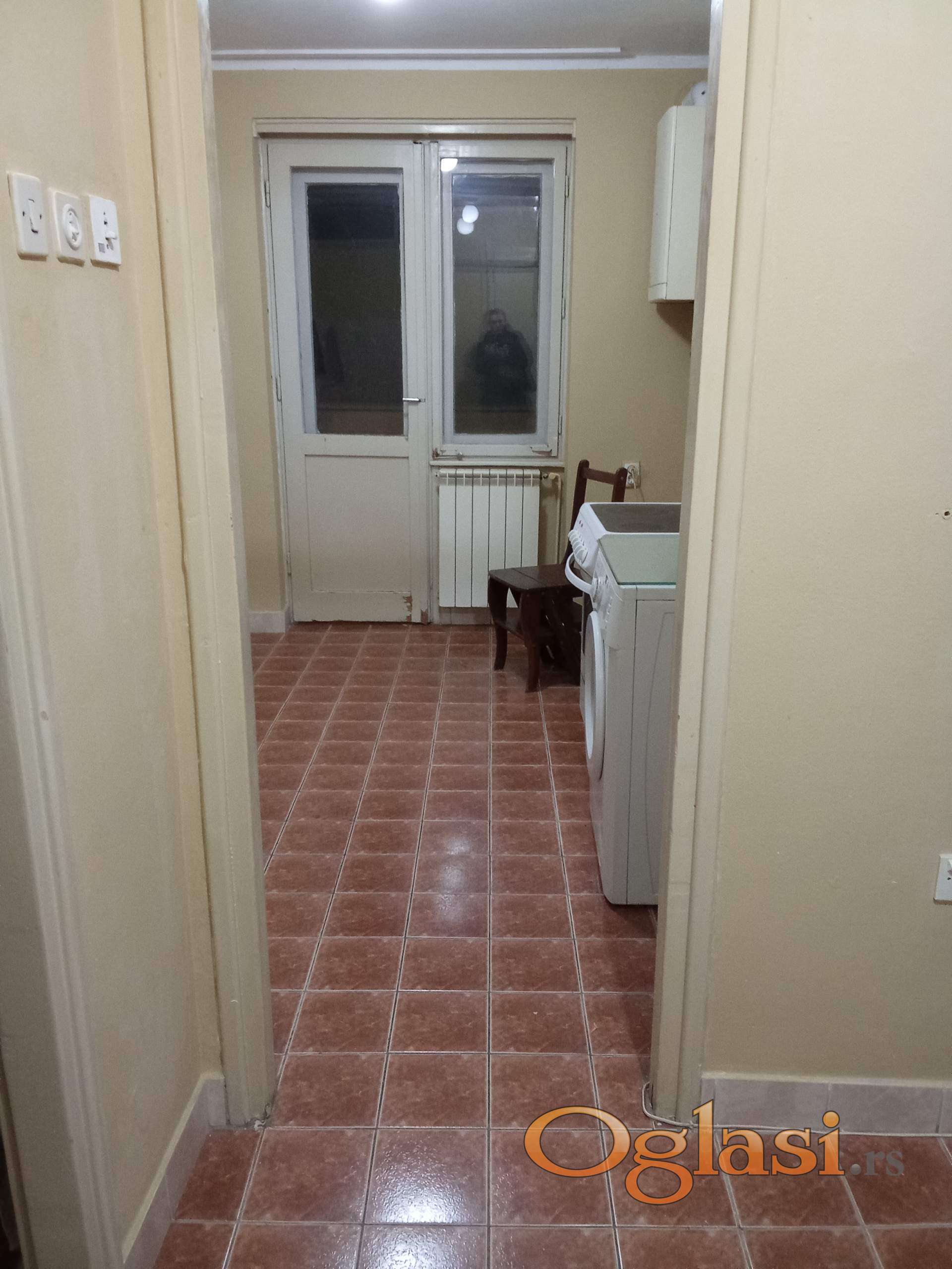 Најам стана за фирму, 15 мин од Богословије, на улазу у Панчево, преко пута хотела Тамиш : 54 m2, 1. спрат, интерфон, 2 собе, предсобље са уграђеним гардеробером, кухиња, остава, купатило, 2 терасе, једна из веће собе, друга из кухиње, грејање на гас, клима.