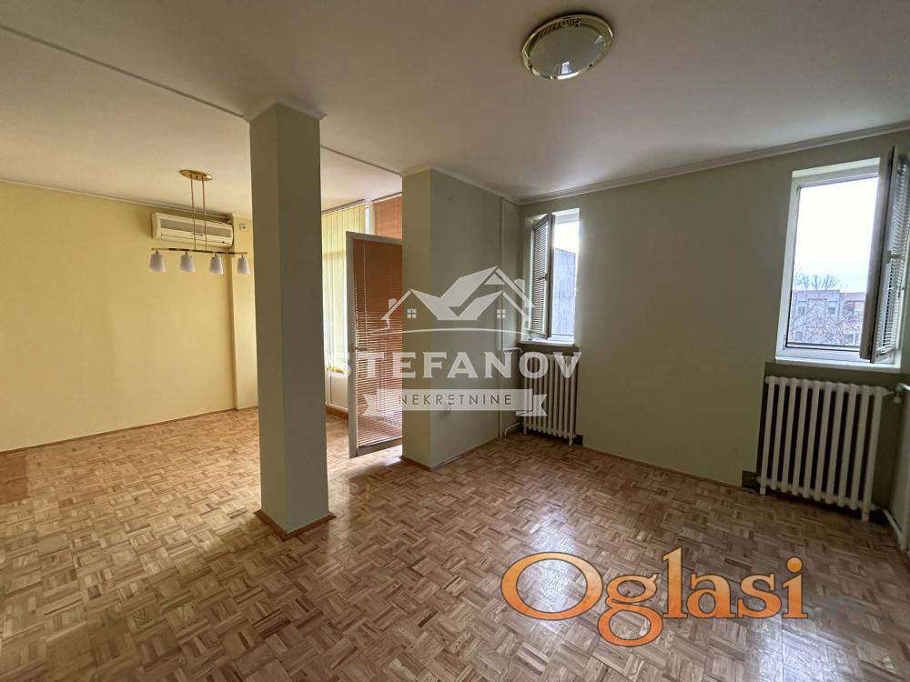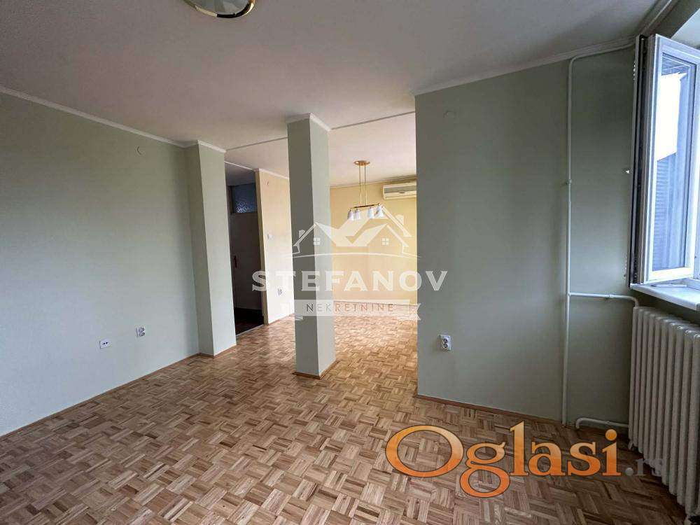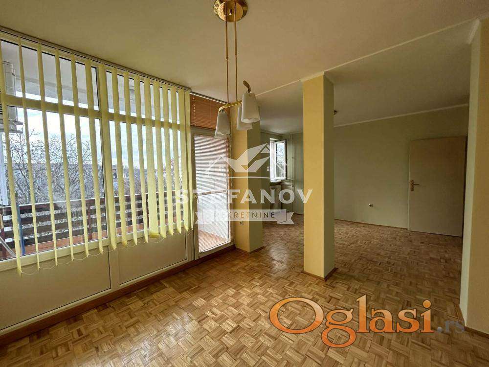 Lep dvosoban stan grejne površine 58 m2 na IV spratu zgrade bez lifta. Sastoji se od hodnika, dnevnog boravka sa trpezarijom iz koje se izlati na terasu, odvojene kuhinje, ostave, spavaće sobe i kupatila. Po podovima postavljen parket i keramika, stolarija PVC, grejanje gradsko, nova sigurnosna vrata. Stanu pripada podrum. Na krovu zgrade urađena hidroizolacija a u samom stanu po plafonu urađena termoizolacija. Stan izuzetno funkcionalnog rasporeda, svetao, prostran i na prelepoj lokaciji. Zgrada lepo održavana. Uknjižen 1/1. Moguća kupovina putem stambenog kredita. Cena nije fiksna!