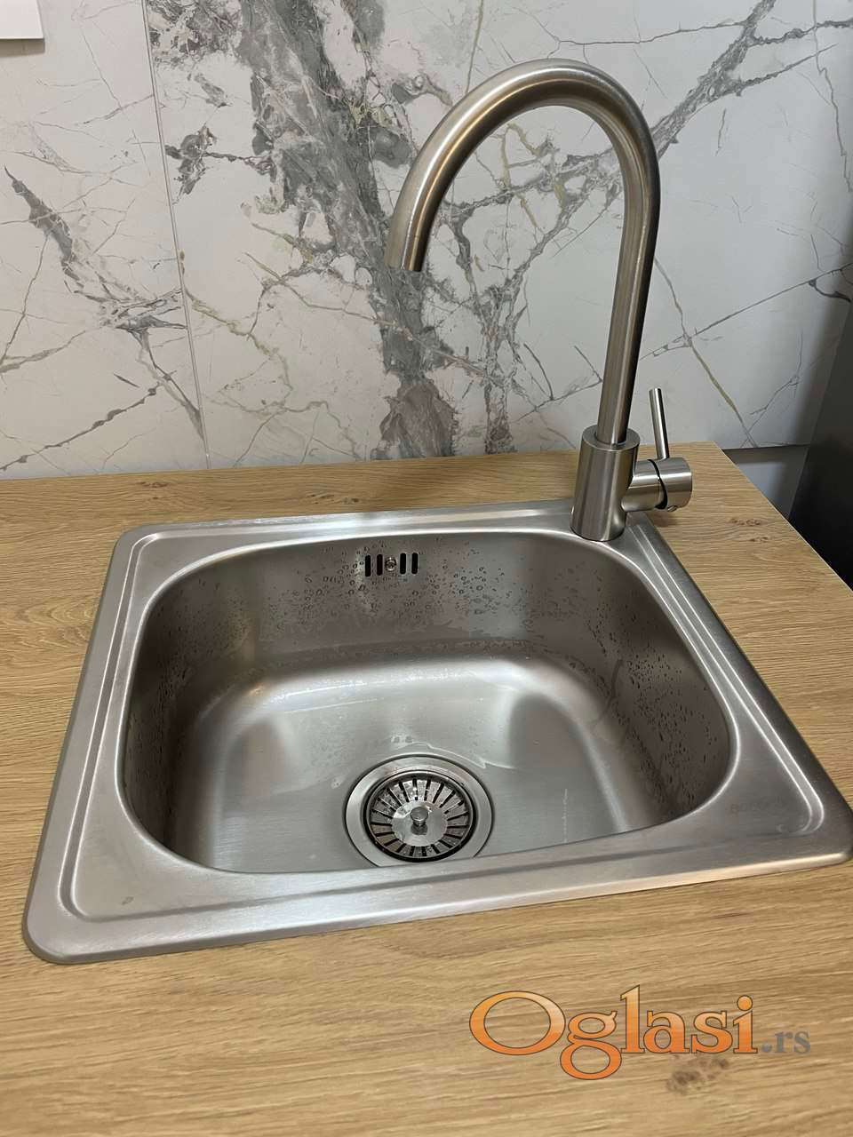 Kuhinjski elementi komplet gornji i donji sa radnom plocom, sudoperom i slavinom.