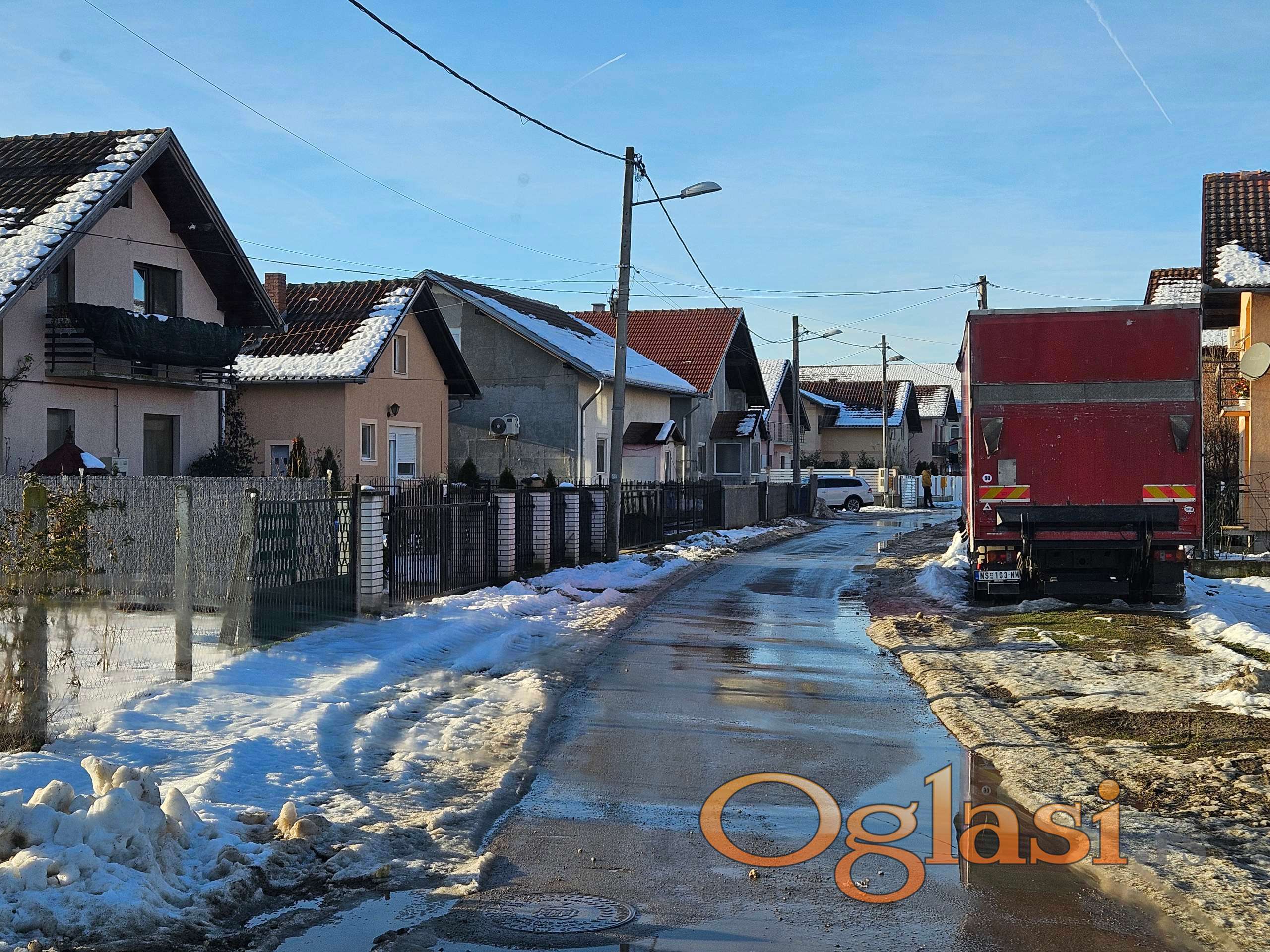 Cela ulica je asfaltirana, samo poslednjih 150m je nabijeni tucanik. Trebalo bi do proleca da se asfaltira i to. Inace cela ulica do kraja se cisti zimi. Iza placa u daljini je novi koridor, a plac je odlicno povezan sa svim stranama. Po projektu planira se izgradnja skole i vrtica. Na ovom potezu dozvoljena je gradnja 8 spratova, tako da ima raznih mogucnosti. Oko placa su sve novo izgradjene kuce. Odlicna i veoma mirna lokacija.