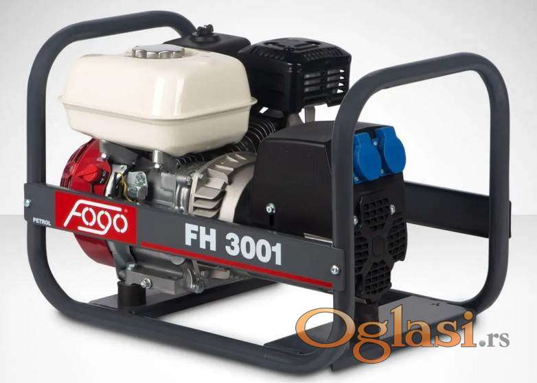 FOGO F3001Cena: 45.000 RSD + PDV Pouzdan generator maksimalne snage 3 kW, pogodan za terenski rad, radionice i rezervno napajanje. Motor zapremine 212 cm³ omogućava stabilan rad uz potrošnju od oko 1,4 L goriva na sat pri 75% opterećenja. FOGO F3001RCena: 47.000 RSD + PDV Model sa AVR stabilizacijom napona, što omogućava sigurniji rad sa električnim alatima i osetljivijom opremom. FOGO FH3001Cena: 65.000 RSD + PDV Generator opremljen Honda GX200 motorom, jednim od najpouzdanijih motora u svojoj klasi, poznatim po dugom veku trajanja i stabilnom radu u zahtevnim uslovima. FOGO FM3001Cena: 56.000 RSD + PDV Model sa Mitsubishi motorom, koji obezbeđuje ekonomičnu potrošnju goriva i stabilan rad pri dugotrajnim opterećenjima. FOGO FH800TCena: 170.000 RSD + PDV Trofazni agregat maksimalne snage 7,7 kVA, opremljen Honda GX390 motorom i velikim rezervoarom koji omogućava autonomiju rada do 16,7 sati pri 75% opterećenja. Idealan za gradilišta, industrijske objekte i profesionalnu upotrebu.