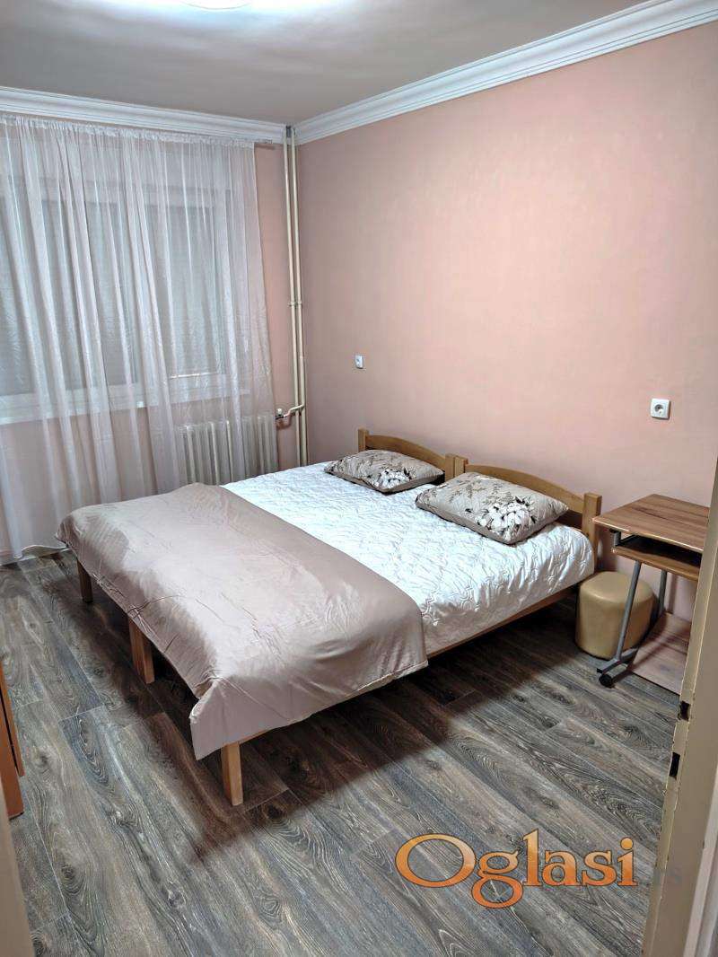 Stan se sastoji od ulaznog predsoblja, dnevnog boravka, kuhinje, spavaće sobe, kupatila i terase. U dnevnom boravku regal, ugaona garnitura, klub sto, radni sto.. U spavaćoj sobi dva kreveta sa novim dušecima, plakari i radni sto. U kuhinji nov kombinovani frižider , šporet sa ravnom pločom i nov aspirator.