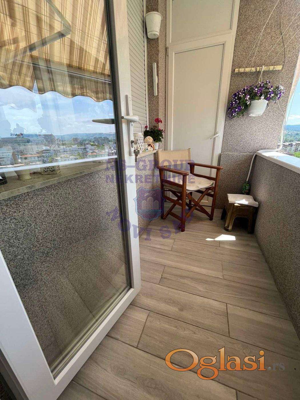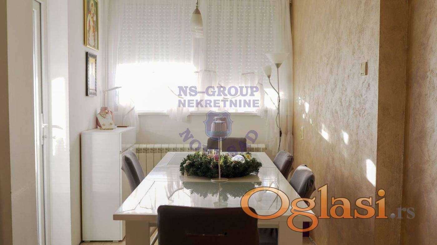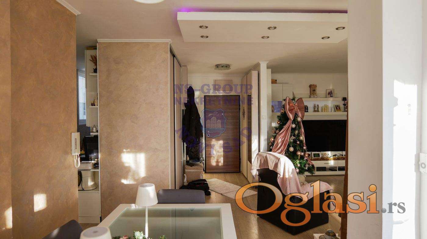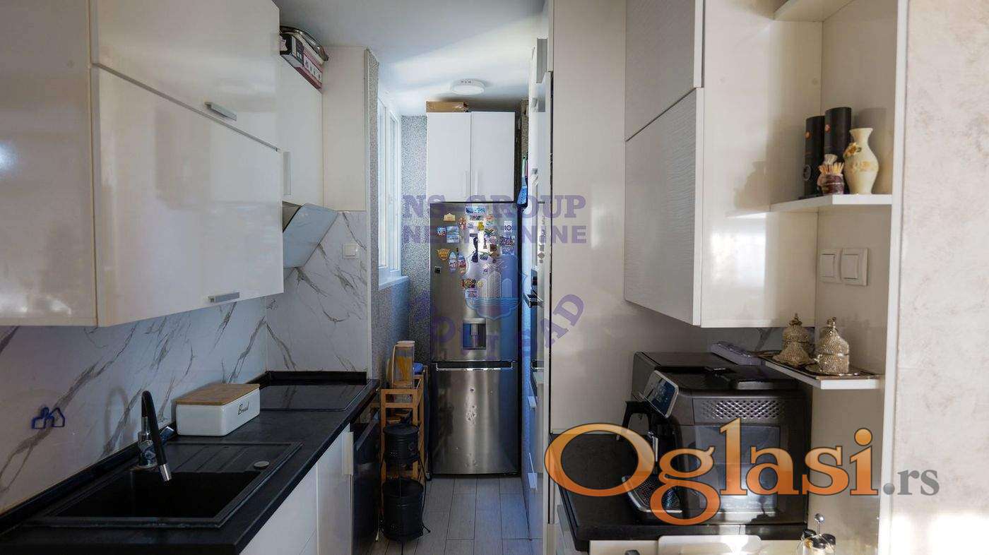 Na prodaju stan idealne lokacije, na doslovno jedan pešački prelaz udaljenosti od Promenade, univerziteta i Spensa. Stan se nalazi na 15. od 16 spratova, kompletno je renoviran i opremljen. Sastoji se od prostranog dnevnog boravka, trpezarije i uvučene kuhinje, Ima 3 spavaće sobe, a poseduje i kupatilo i wc. Stan ima i terasu s koje se pruža prelep pogled na Dunav, Frušku goru i centar grada.