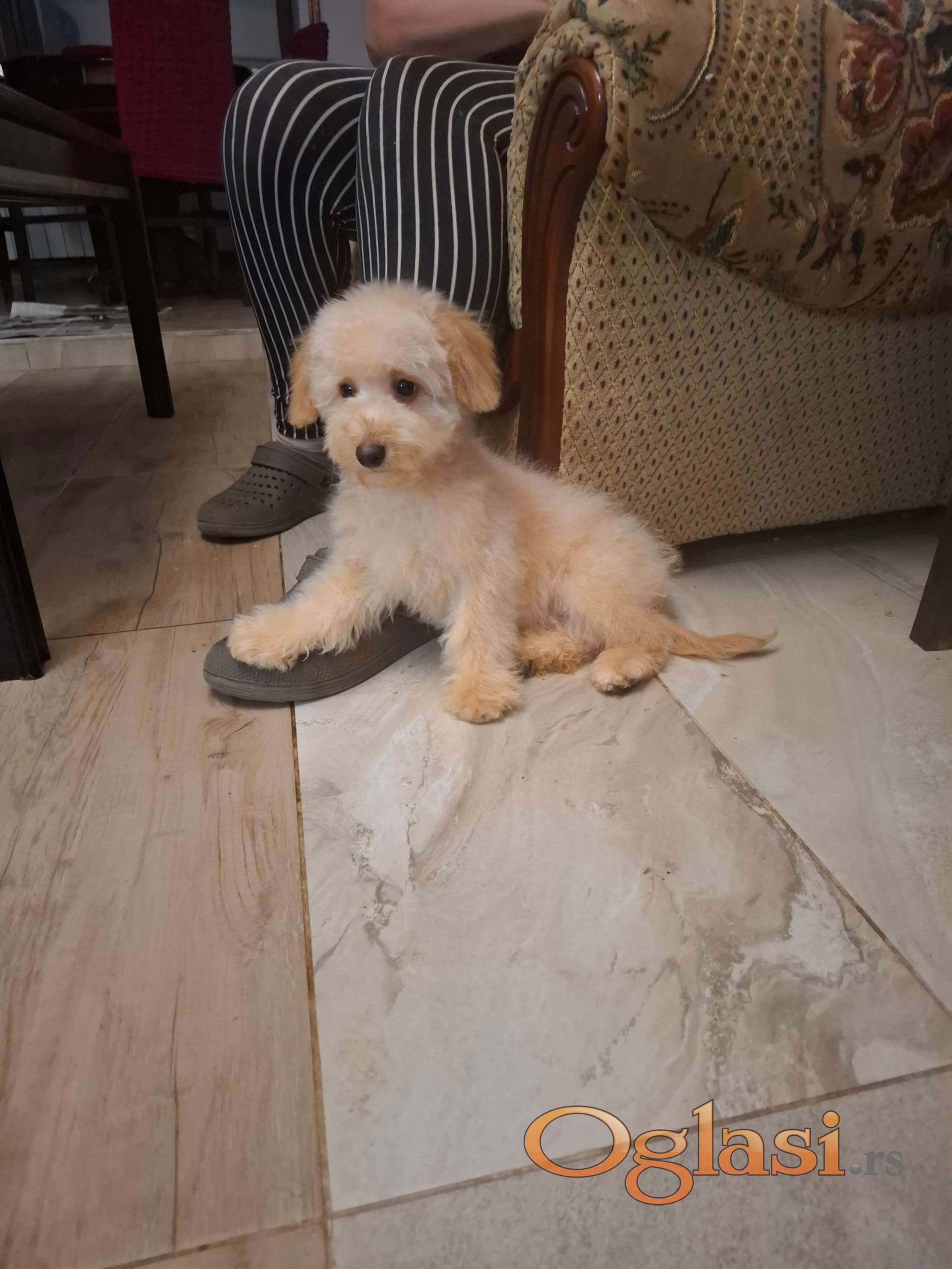 Maltipu aprikot mužjak, četiri i po meseca, primio sve tri vakcine.