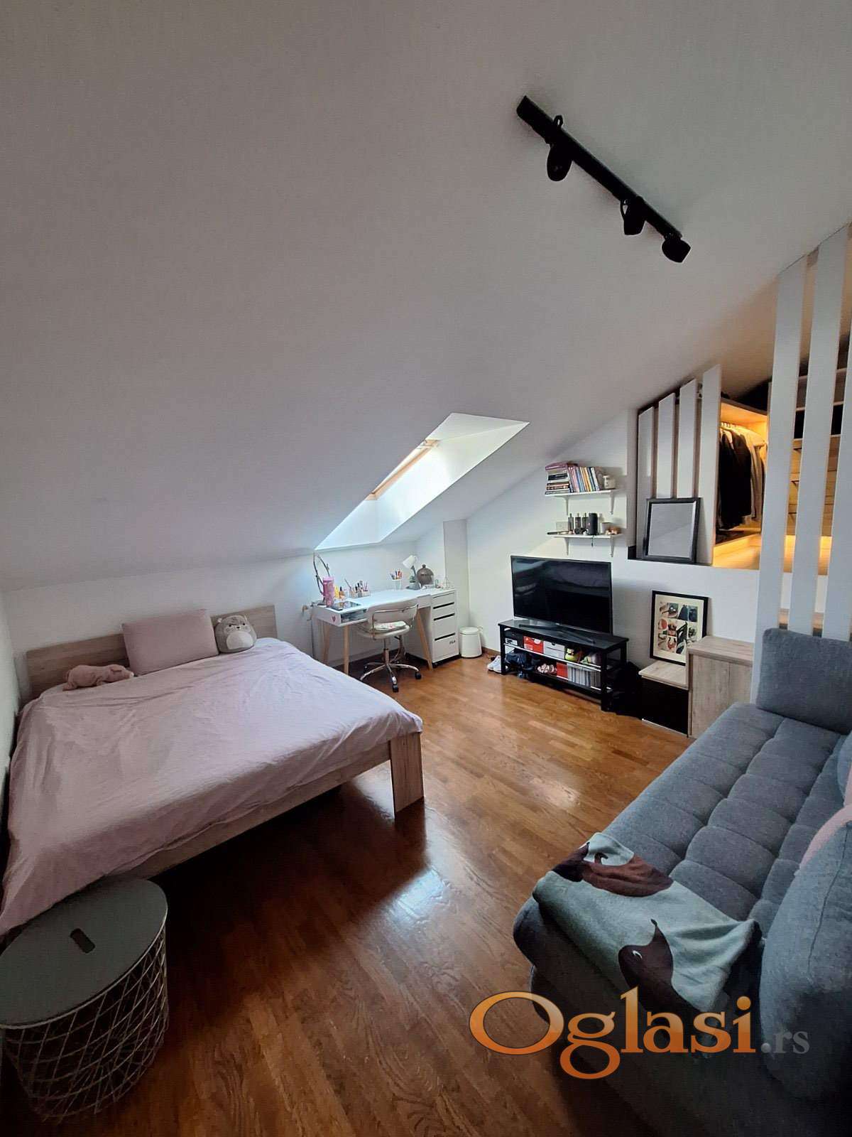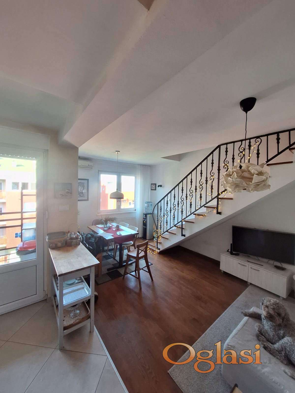 Donju etažu stana čini prostrana dnevna soba sa kuhinjom, terasom i toaletom, dok se na gornjoj etaži nalaze dve spavaće sobe i kupatilo.