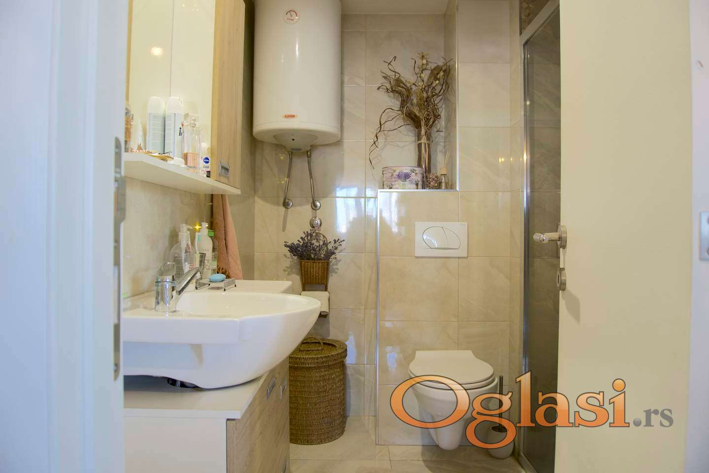 – posebna prostorija za odlaganje, trenutno organizovana kao walk-in garderober, u kojoj su predviđeni priključci za veš mašinu i sušilicu.