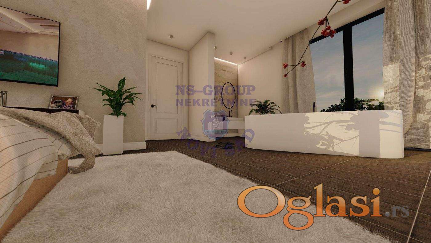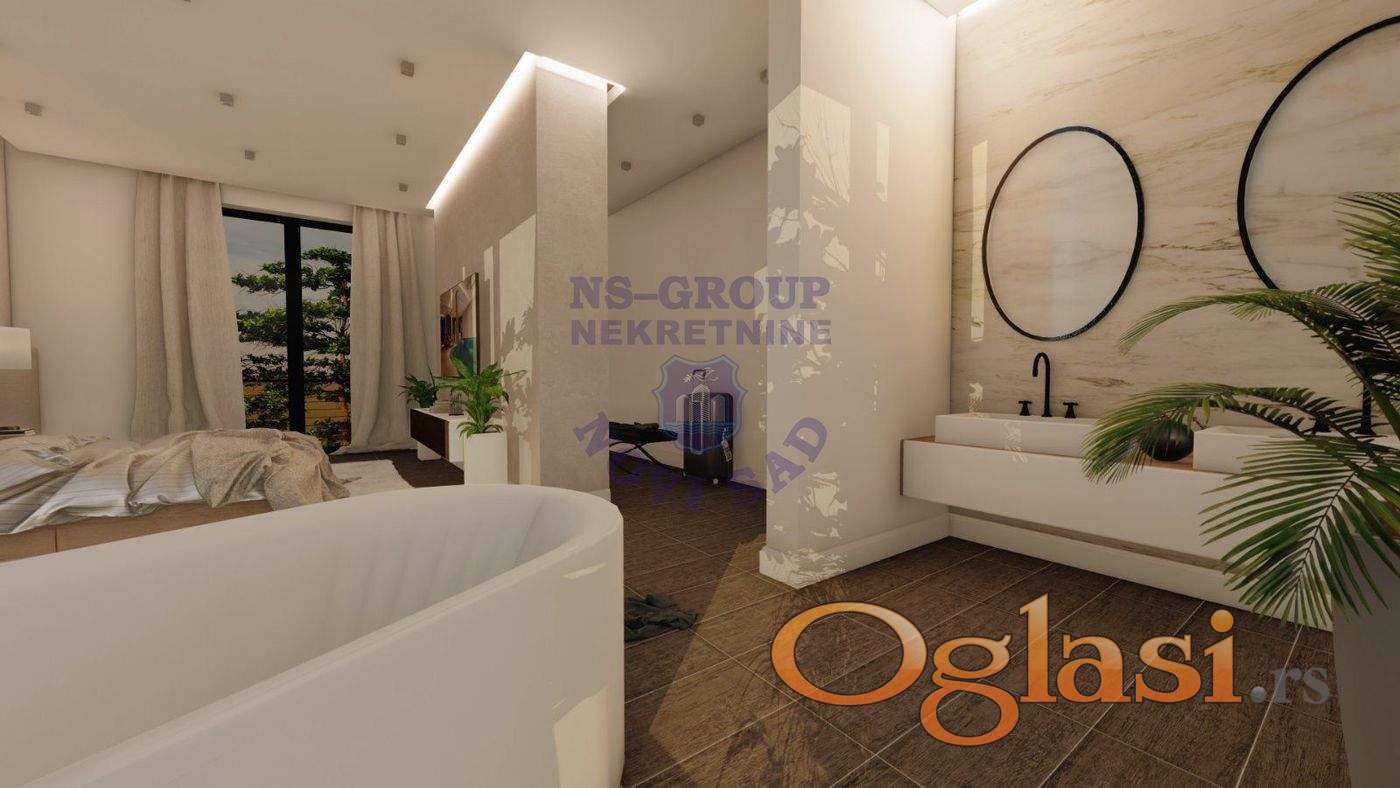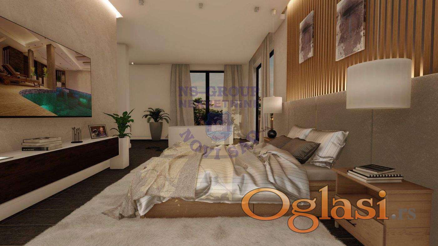 Luksuzna nekretnina u najmirnijem delu Petrovaradina. Uvučena od buke i gužve, idealna za život i za ljude koji vole da uživaju. Izuzetno kvalitetno rađena kuća, video nadzor, alarm,garaža za 6 automobila, bazen od 60m2 u suterenu, u sklopu bazena sauna i bar. Pogled na ceo Petrovaradin i Mišeluk, se pruža sa predivne terase koja je na krovu kuće. Svaki opis je suvišan, pogledajte slike (rendere i video) koje će malo dočarati ovu oazu mira i hedonizma.