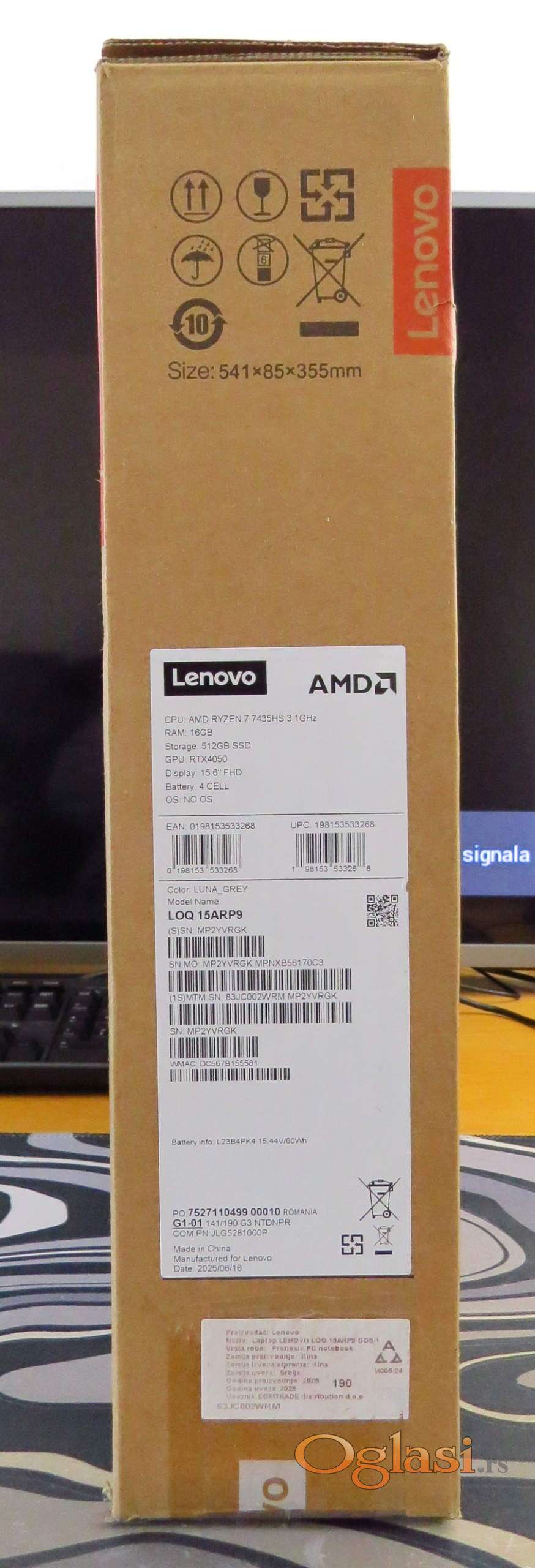 NOV Lenovo LOQ-15ARP9 R7 7435HS/RTX 4050/16/512/15.6 IPS 144Hz/Garancija 2028.