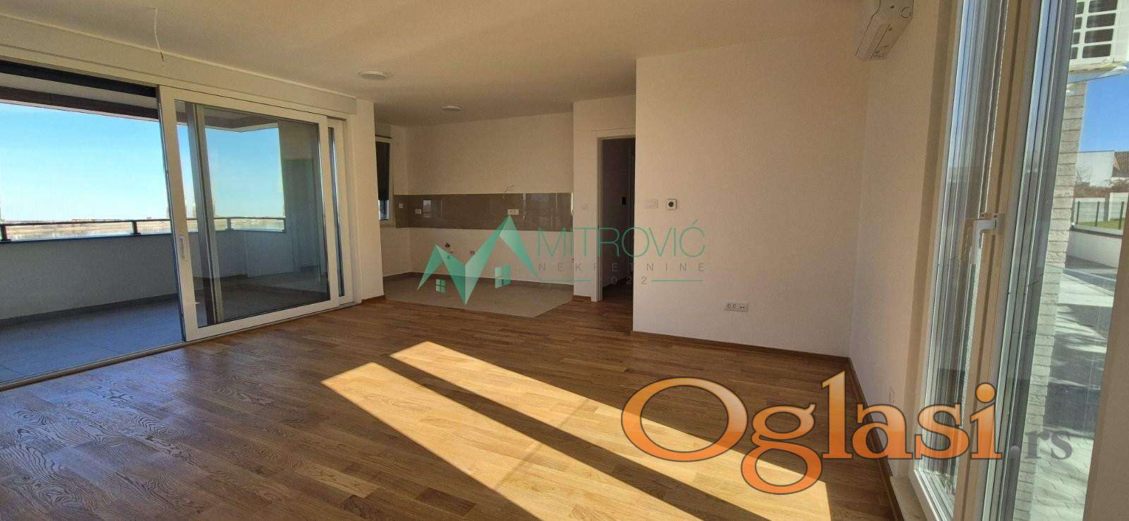 Prodaje se nov, useljiv stan površine 92m2 sa prelepim pogledom na Novi Sad i Dunav. Blizina budućeg mosta, na manje od 5 min vožnje do Novog Sada. Osim predivnog pogleda, ovu lokaciju odlikuju mir, čist vazduh i lepo okruženje. Nalazi se na I spratu objekta. Sadrži sledeće prostorije: Dnevni boravak sa trpezarijskim delom i kuhinjom, tri spavaće sobe, dva kupatila od kojih je jedno sklopu master spavaće sobe, velika terasa i hodnik. u Pored jednog gratis parking mesta, postoji mogućnost kupovine dodatnog parking mesta sa punjačem za električna vozila. Objekat je opremljen video nadzorom, otključavanje zgrade na sistem za prepoznavanje lica. Podno grejanje na toplotne pumpe gde svaki stan ima sopstvenu pumpu.