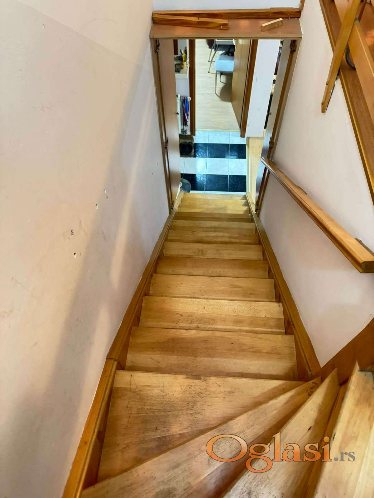 Petosobna, spratna, održavana kuća od čvrstog materijala. Grejanje je centralno na gas. Trofazna struja. Gradska voda. Kanalizacija.