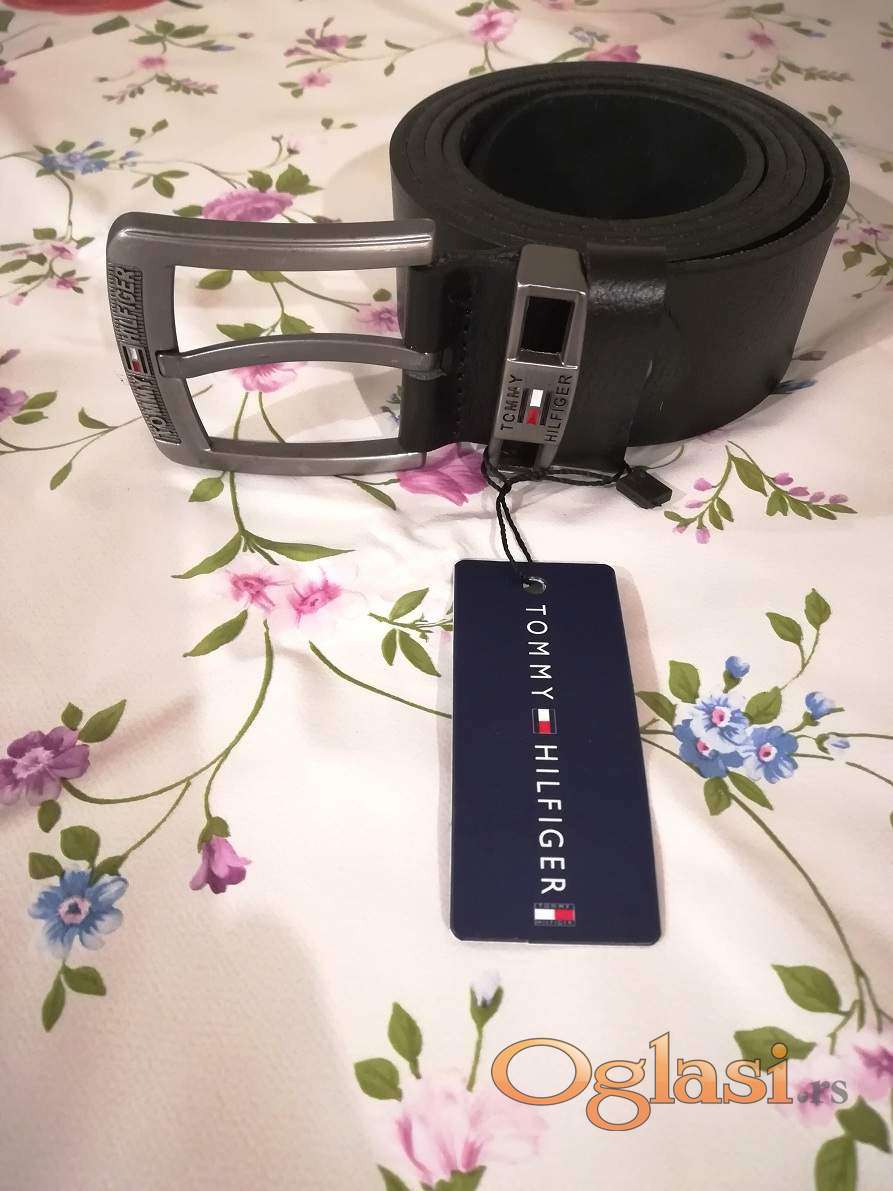 Novi muski kozni markirani kais Tommy Hilfiger sa etiketom.