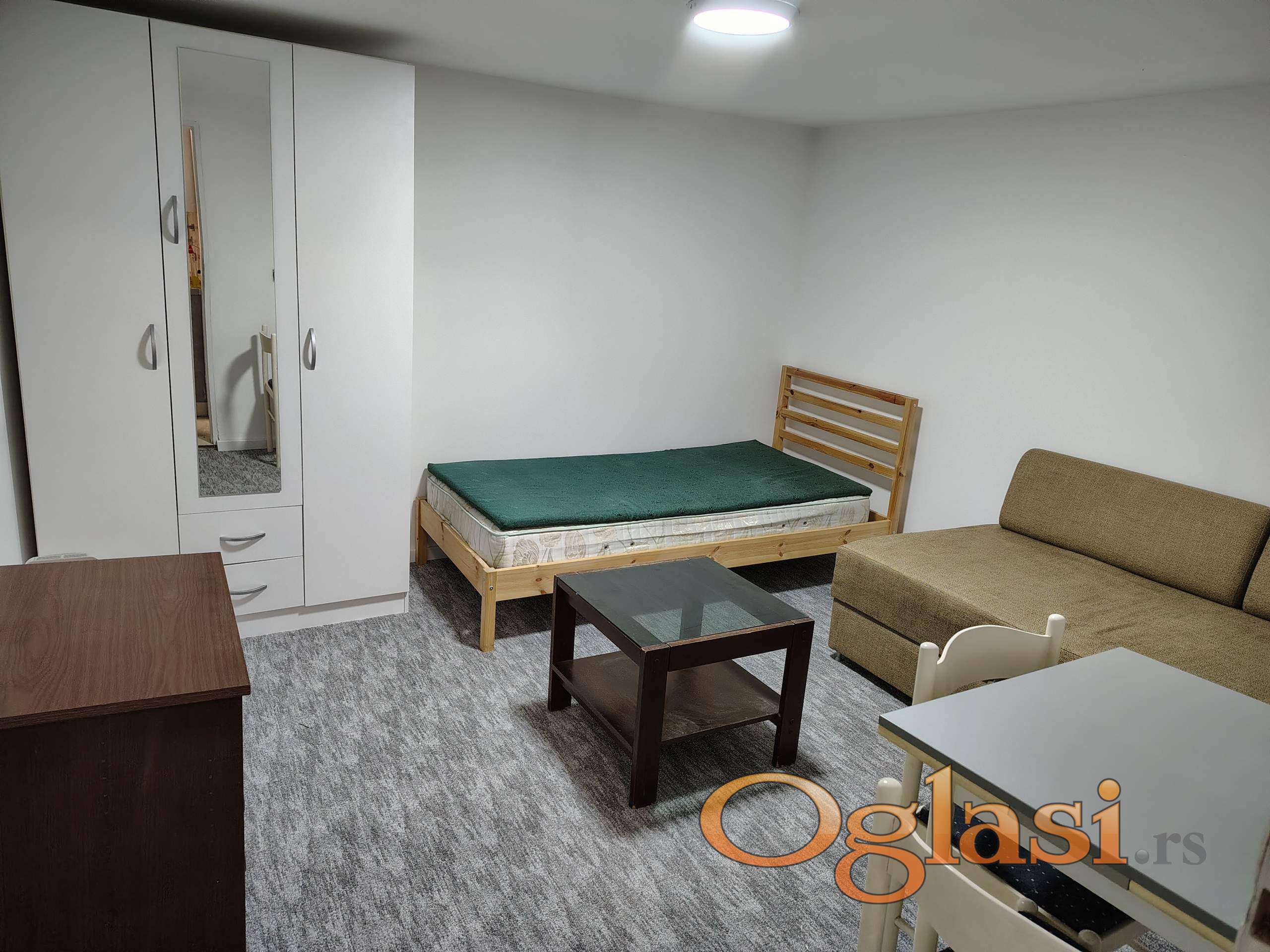 Idealno za jednu ili najvise dve osobe. Orman, TV i frizider kupljeni u prethodne dve godine. U stanu ce biti uradjena adaptacija cajne kuhinje kako bi se napravio prostor za novu ves masinu koja je narucena. Takodje stan ce biti okrecen za novog stanara. Krevet do tv-a je zamenjen i kupljen je nov, sve ostalo je kao na slikama. Po potrebi je moguce izneti jedan krevet. Depozit u visini jedne kirije. Kablovska i internet uracunati u cenu zakupa. Dostupan za useljenje od 15og marta.