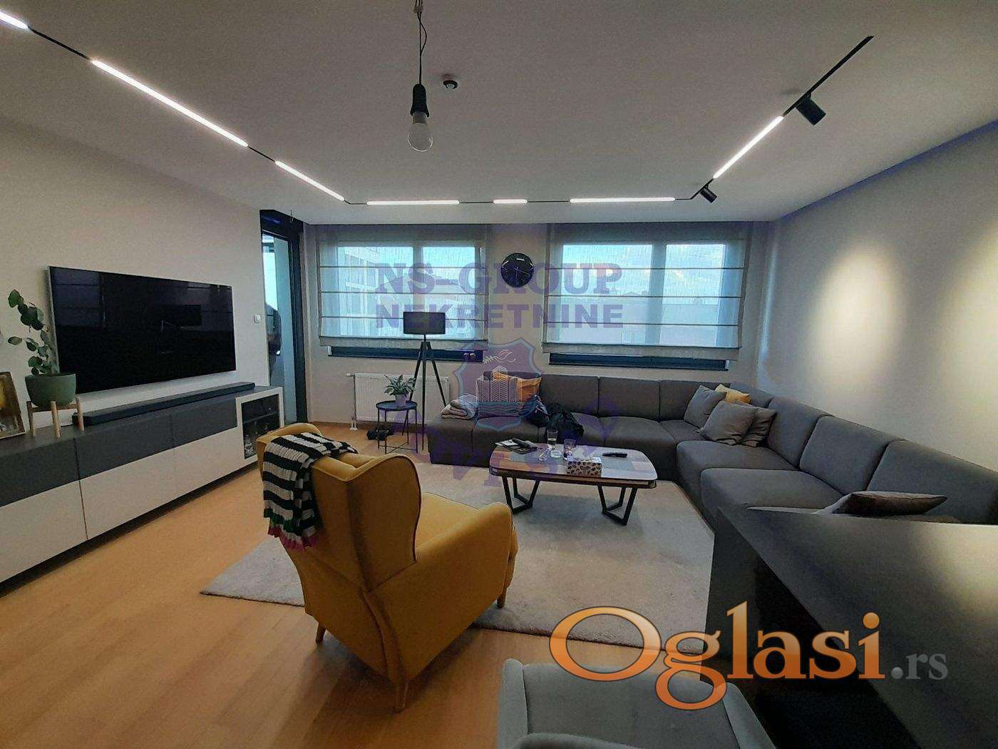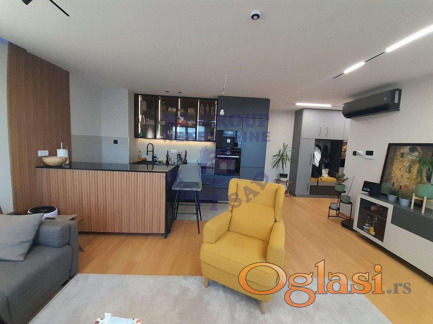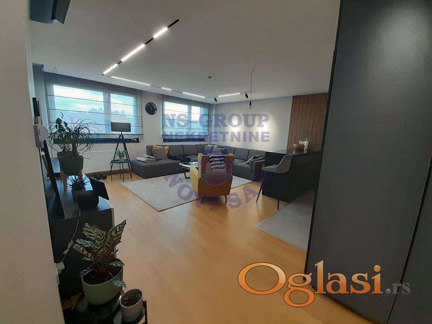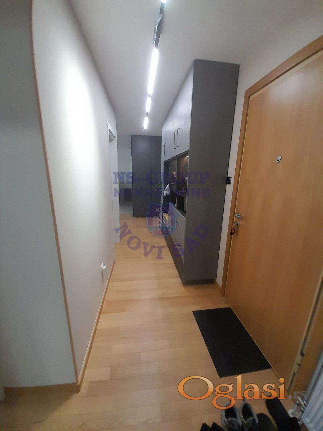 Stan je opremljen modernim smart home sistemom, ugrađenom kuhinjom sa radnim plocama od kvarca, plakarima, spustenim plafonima sa modularnim trakastim led osvetljenjem, klima uređajem 24, električnim podizačima roletni. Mogućnost kupovine garažnog mesta i ostave u zgradi (+ 20.000 evra)