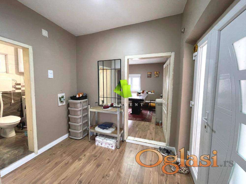 Na 1km od centra opštine Žitorađa na putu za Prokuplje nalazi se adaptirana i odmah useljiva kuća sa velikim dvorištem, udaljena 150m makadamskim putem - od glavnog puta. Korisna stambena površina je 80m2, od prostorija poseduje dnevnu sobu, kombinovanu trpezariju sa kuhinjom i ostavom, spavaću sobu i kupatilo, prelepu terasu i podrum ispod cele površine kuće. Stolarija je PVC, na podu je laminat, a kuhinja i kupatilo su novi. Kuća ima kompletnu infrastrukturu (struja, voda, kanalizacija), a poseduje i sopstveni bunar. Na placu od 6ari nalazi se i pomoćni objekat koji je potrebno sanirati. Hvala Vam što ste pogledali oglas. Za više informacija o ovoj ili drugim nekretninama i zakazivanje razgledanja kontaktirajte agenta na broj telefona iz oglasa (poziv, sms, viber) ili putem e-maila. Kompletnu ponudu dostupnih nekretnina možete pronaći na našem sajtu. Agencija Proagent nekretnine je upisana u Registru posrednika pod brojem: 940.