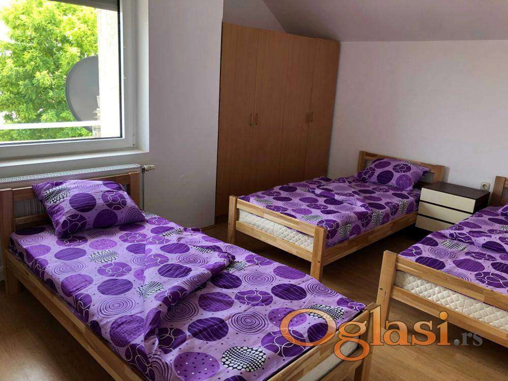 Izdaje se smeštaj za radnike u Inđiji. Smeštaj se nalazi u širem centru grada. Komplet opremljen. Centralno grejanje, klima, kablovska, internet, objekat je pod video nadzorom. Smeštaj se izdaje 80 euro po čoveku. Predviđen je za 8 ljudi.