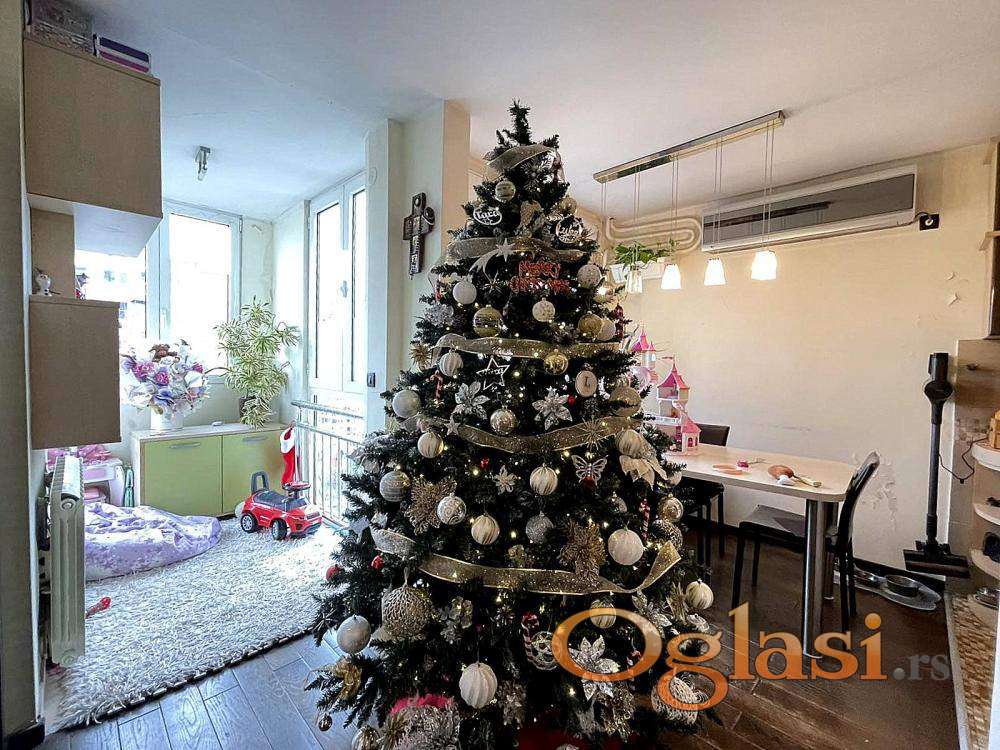 Izvorno dvosoban, vešto i promišljeno adaptiran u dvoiposoban, stan je dobio dodatnu funkcionalnost bez narušavanja prostranosti i protoka prostora. Svaki kvadrat pažljivo je osmišljen.